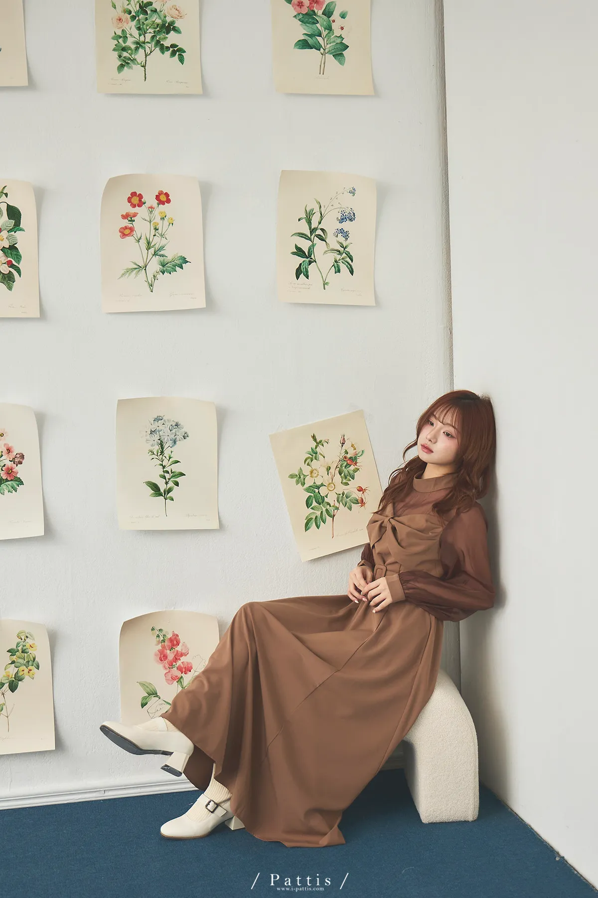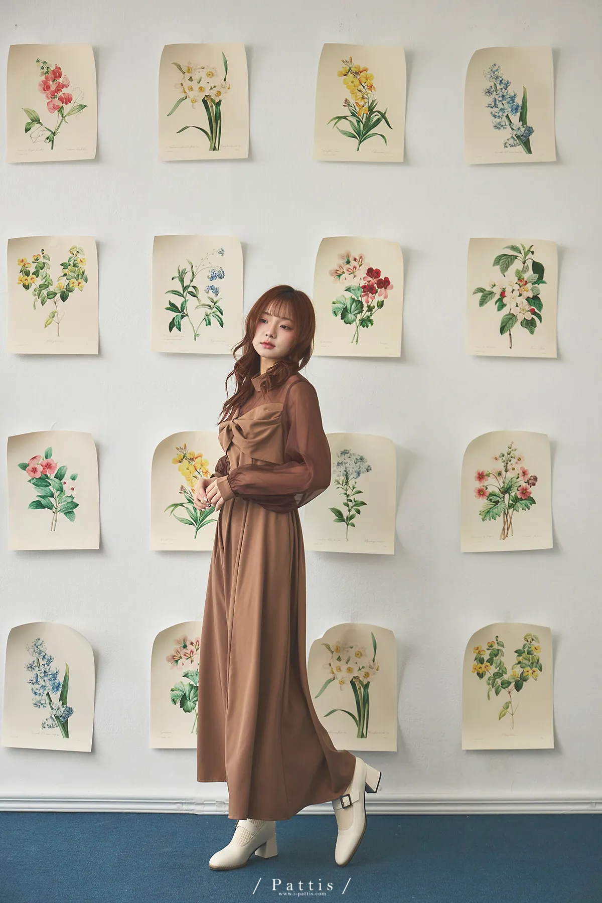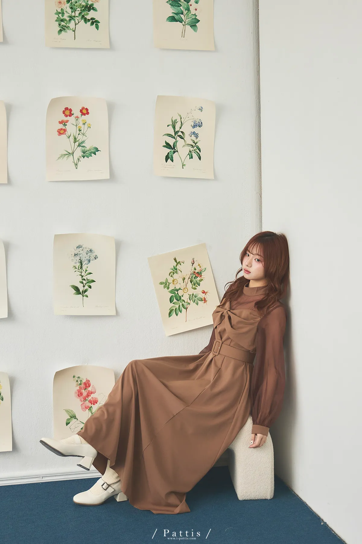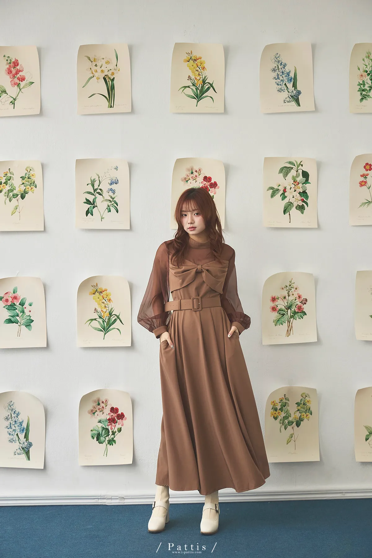 含咖啡因的糖果 | 扭結桃心透肌拼紗洋裝(橘棕)