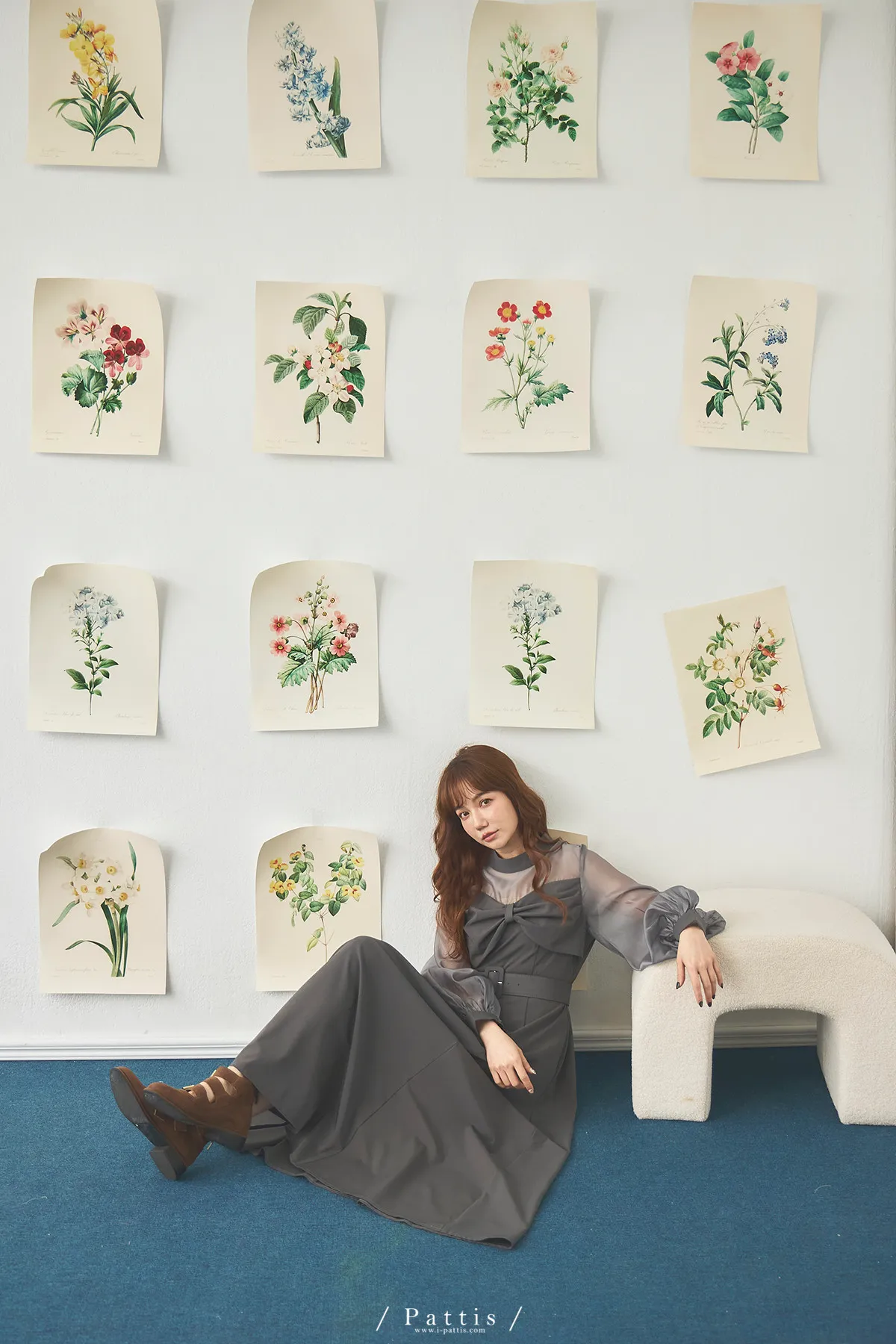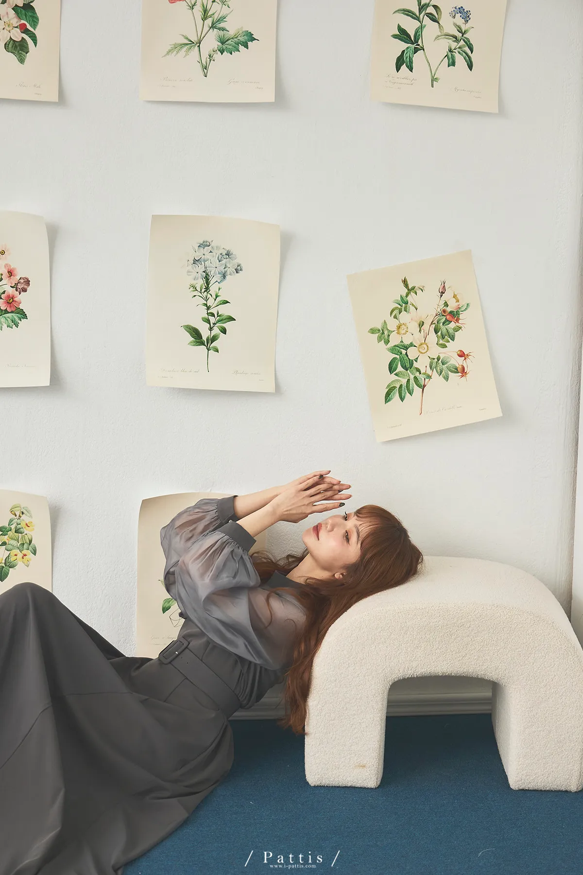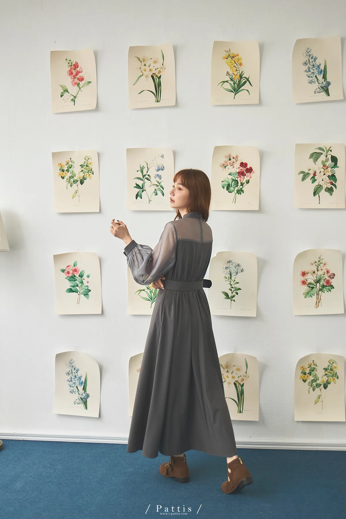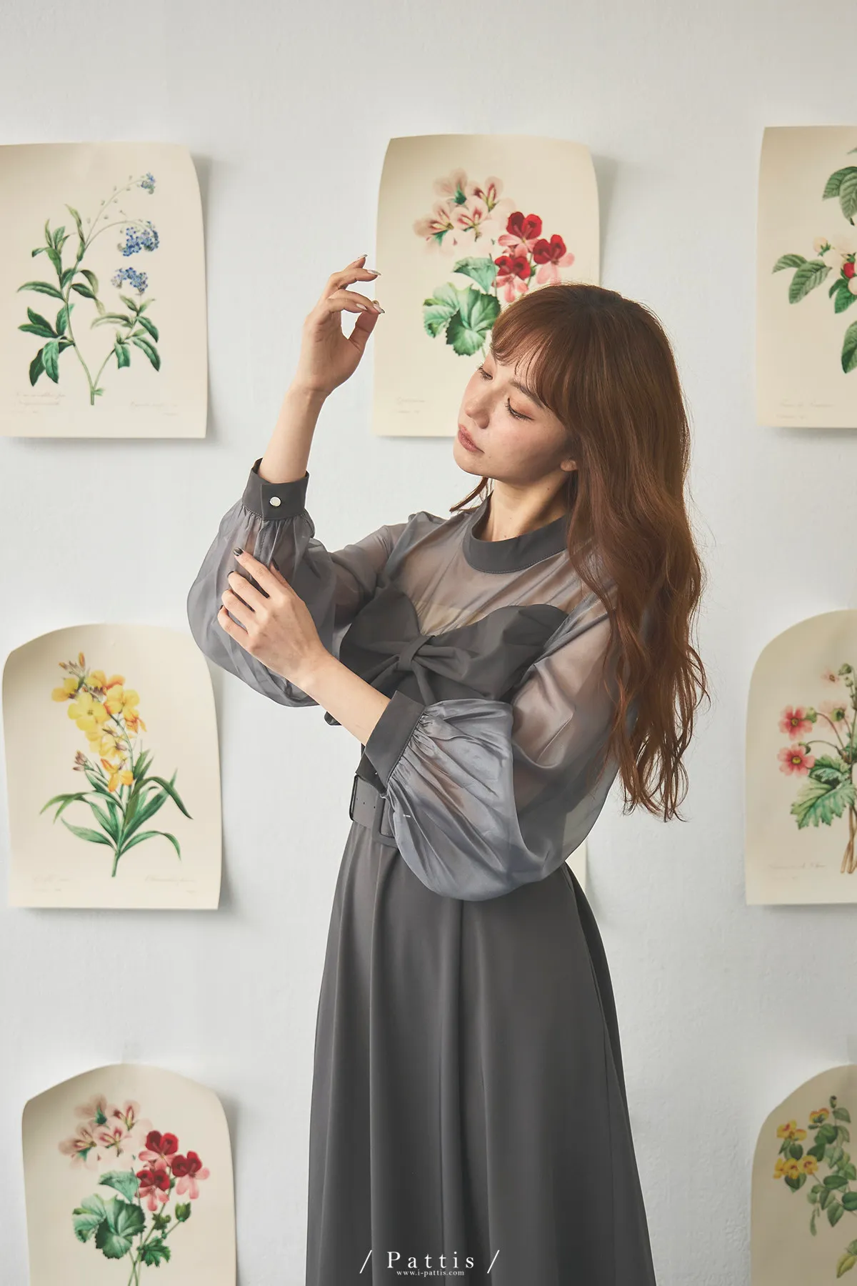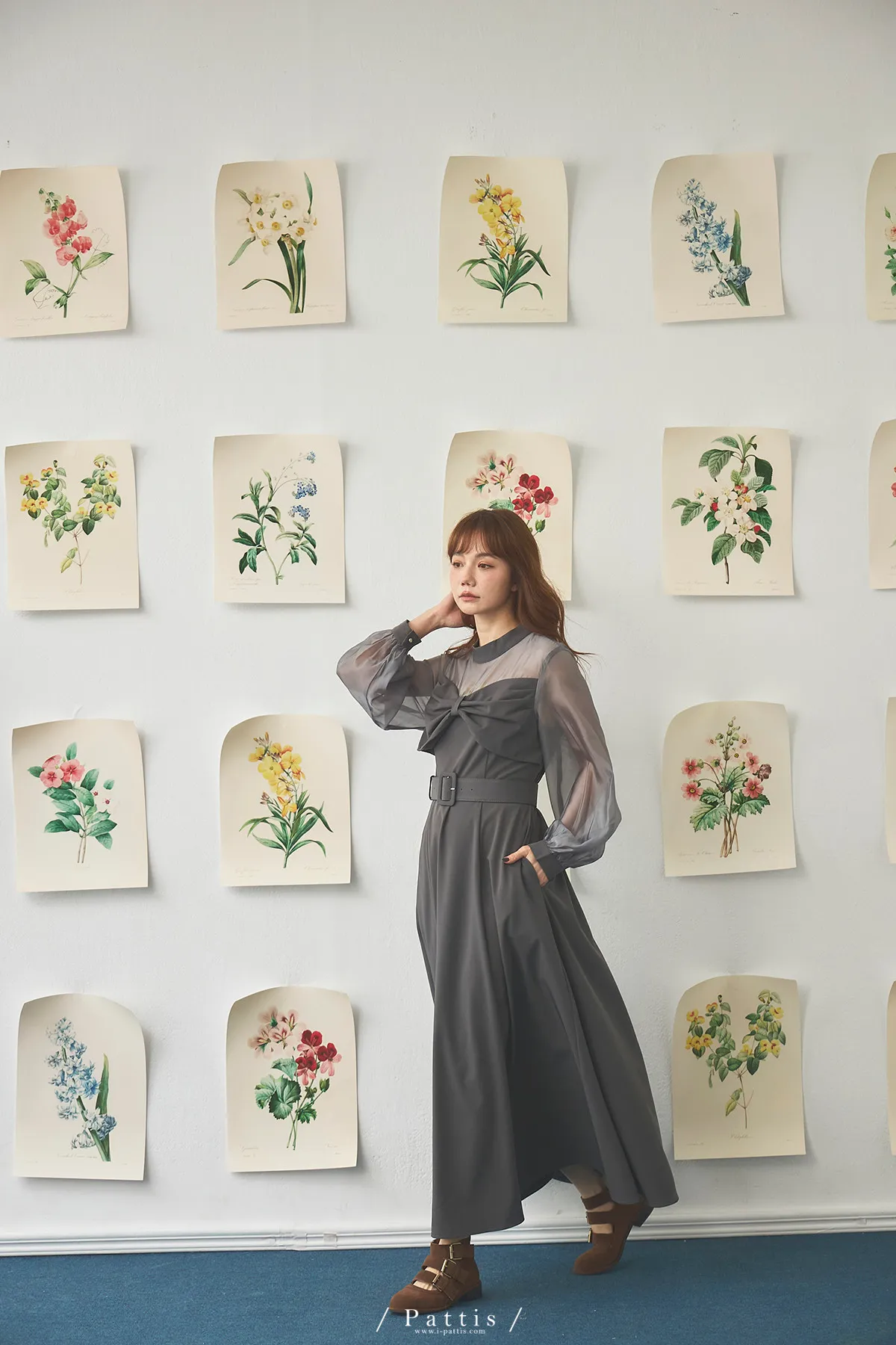 含咖啡因的糖果 | 扭結桃心透肌拼紗洋裝(藍灰)
