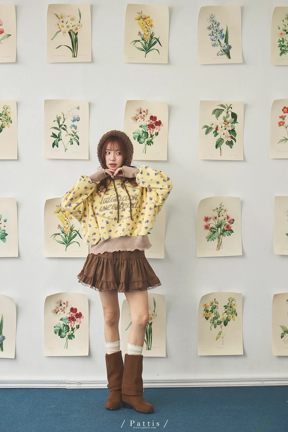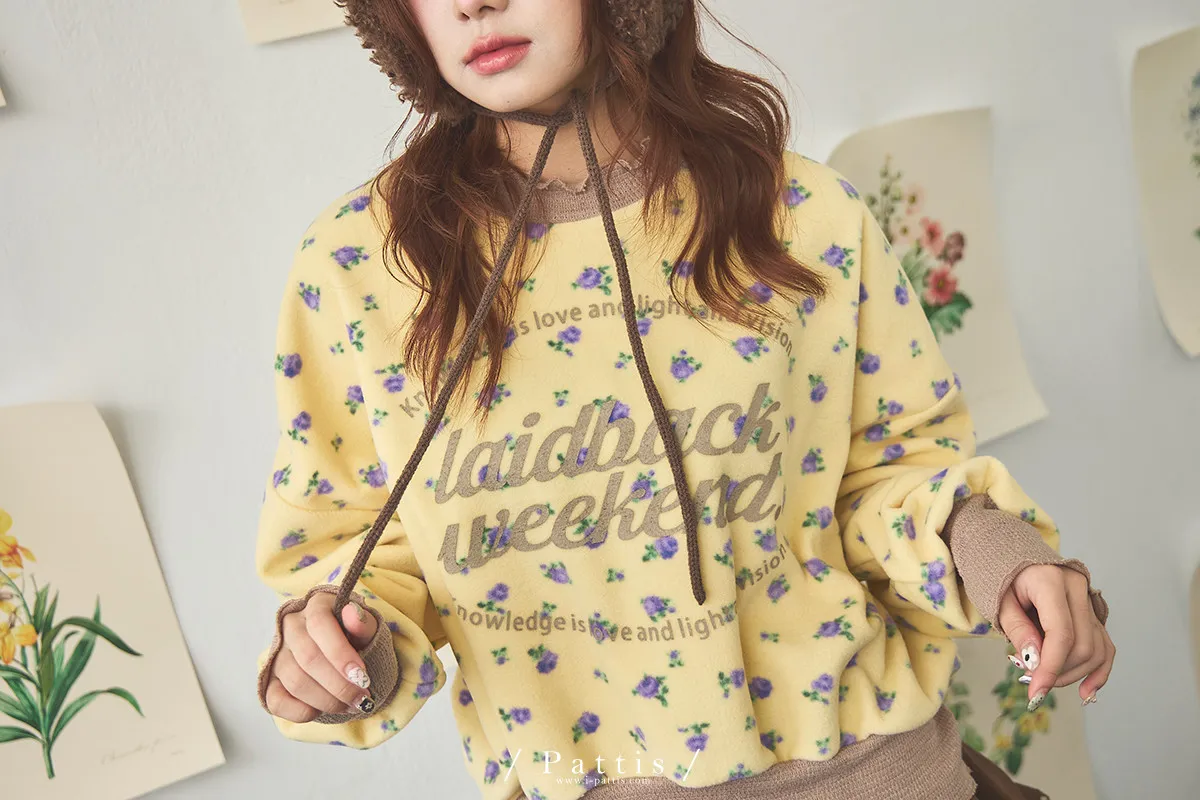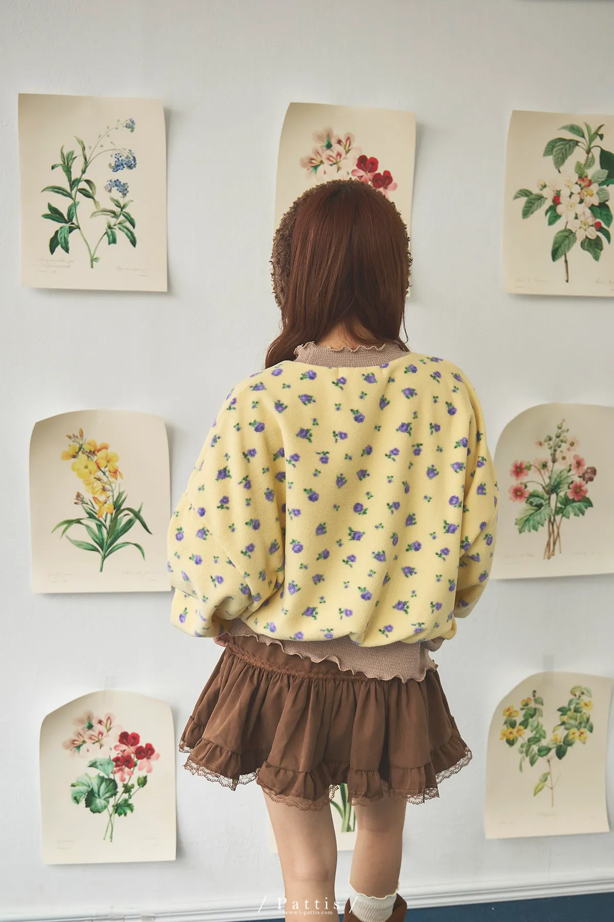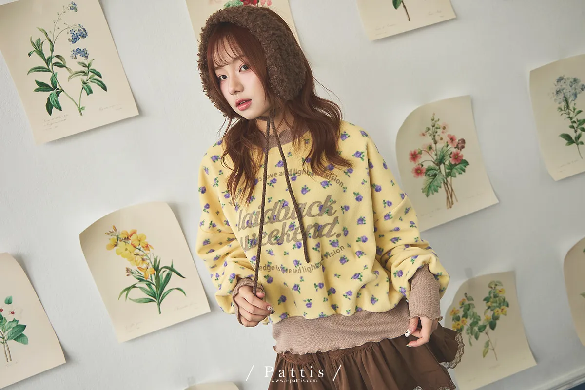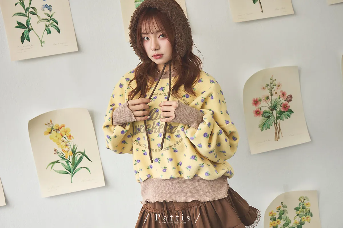 專屬冬日的小花農 | 小玫瑰雙色磨毛羅紋上衣(奶黃棕)