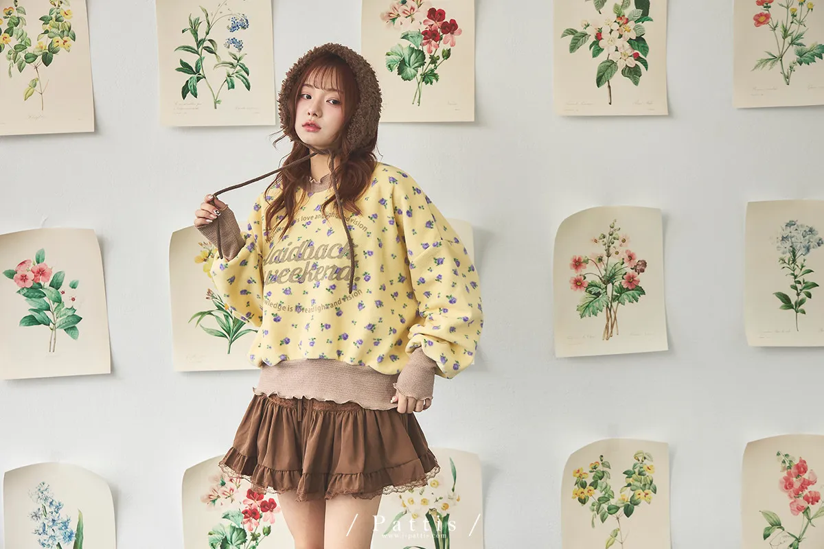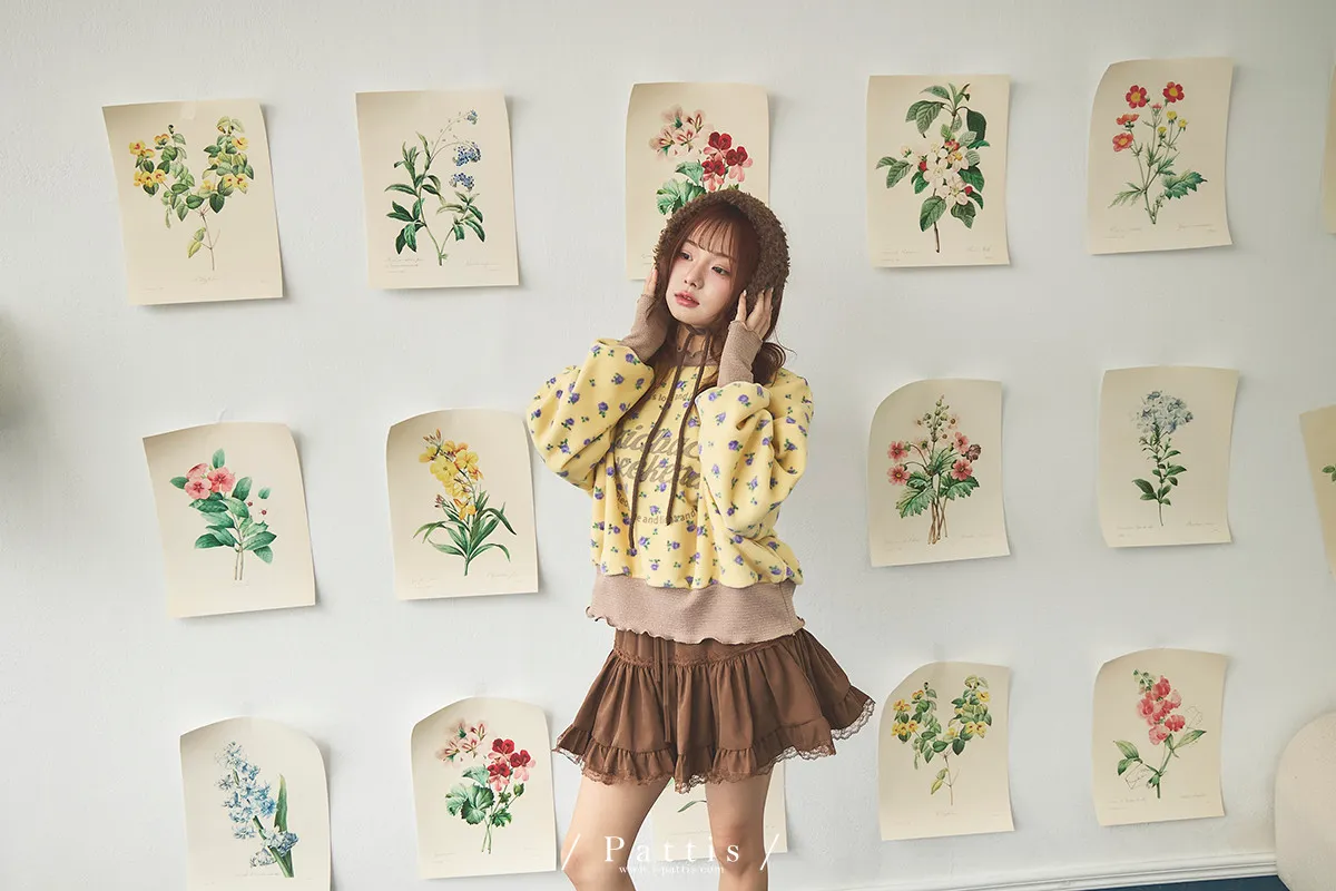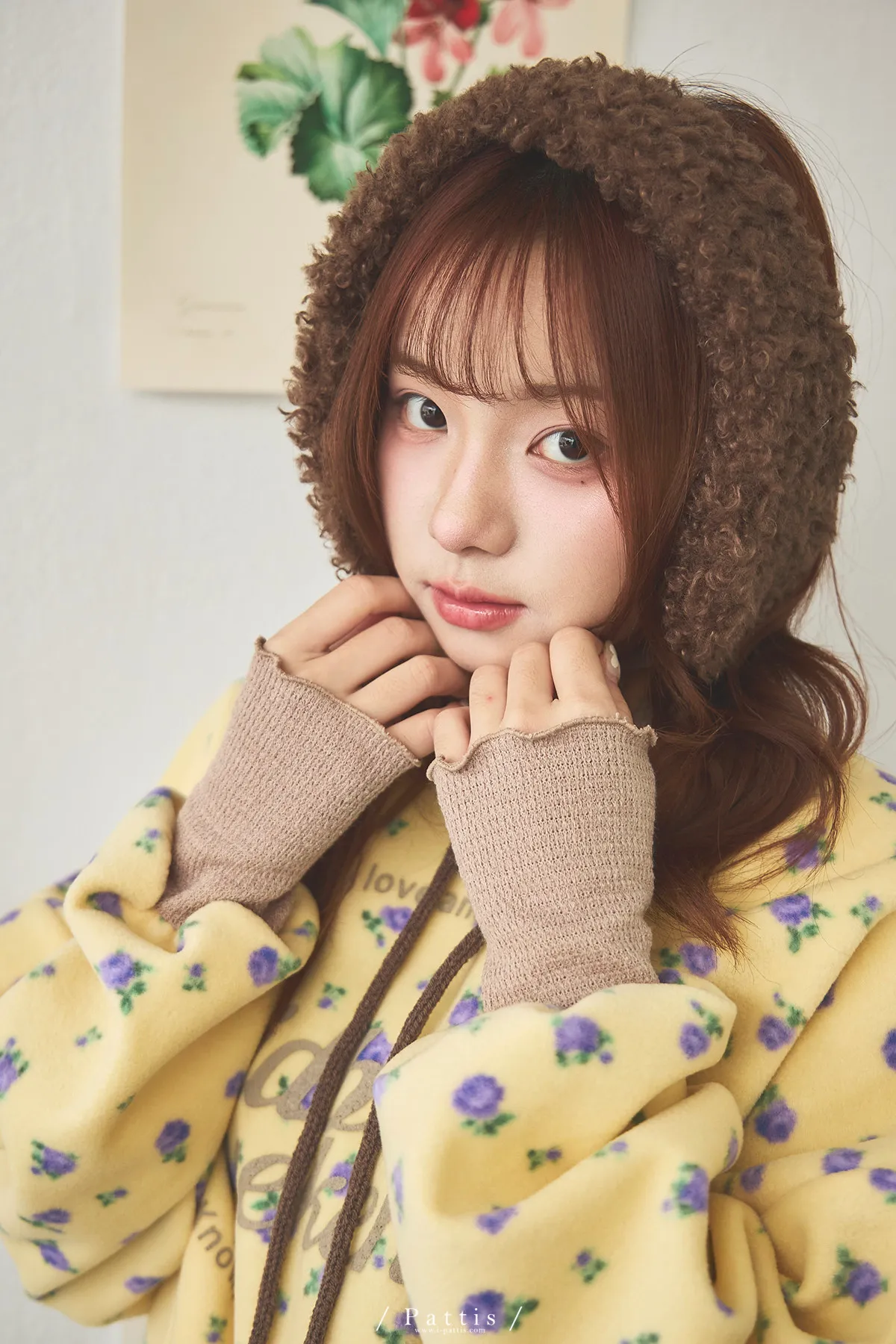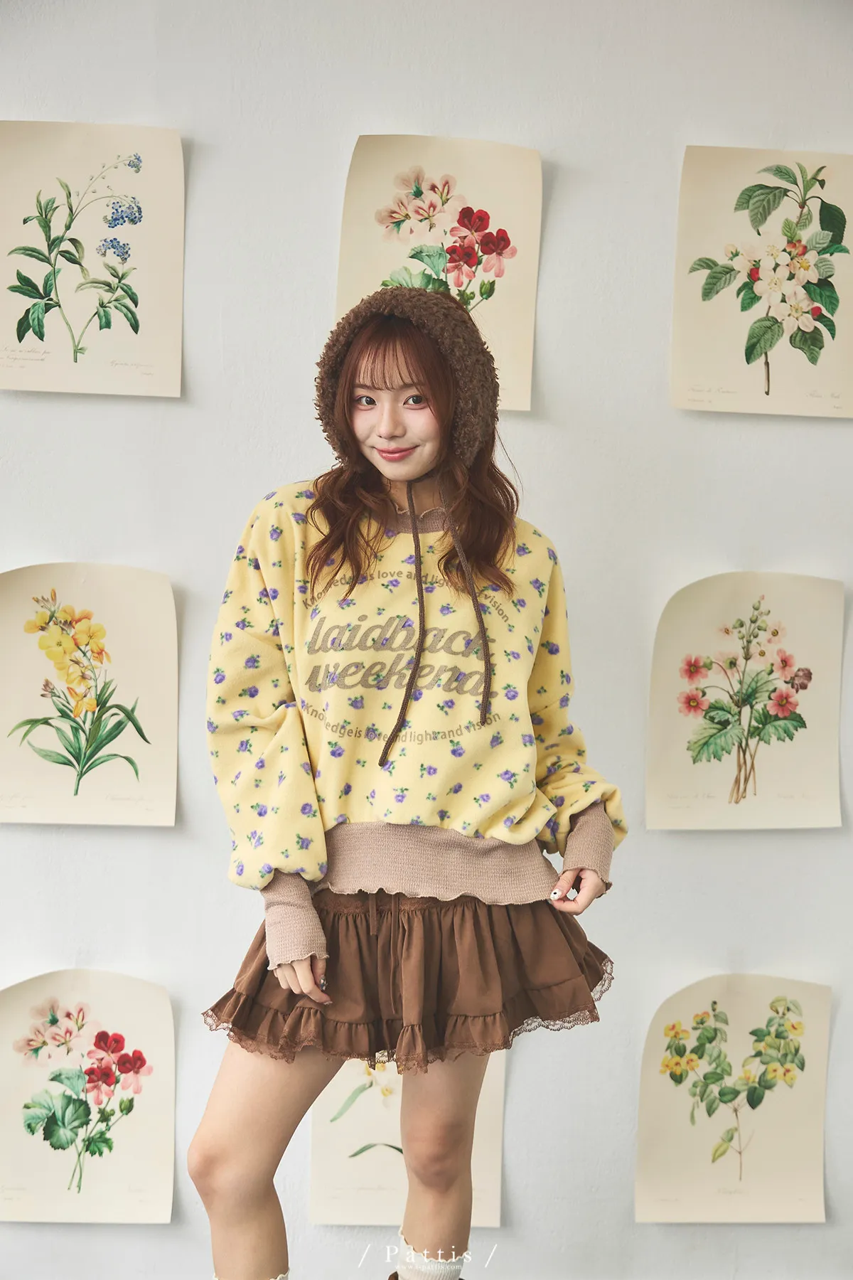專屬冬日的小花農 | 小玫瑰雙色磨毛羅紋上衣(奶黃棕)