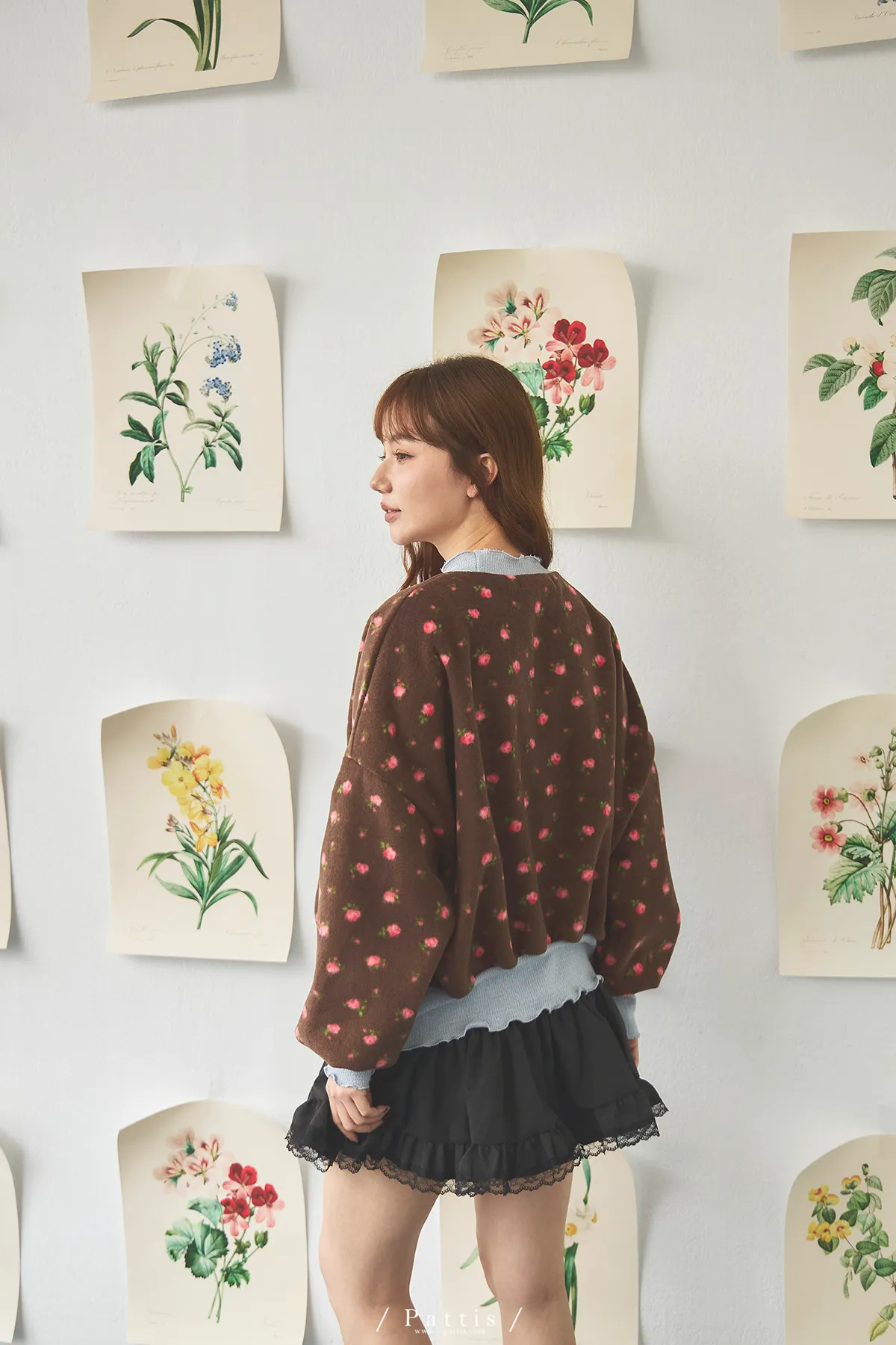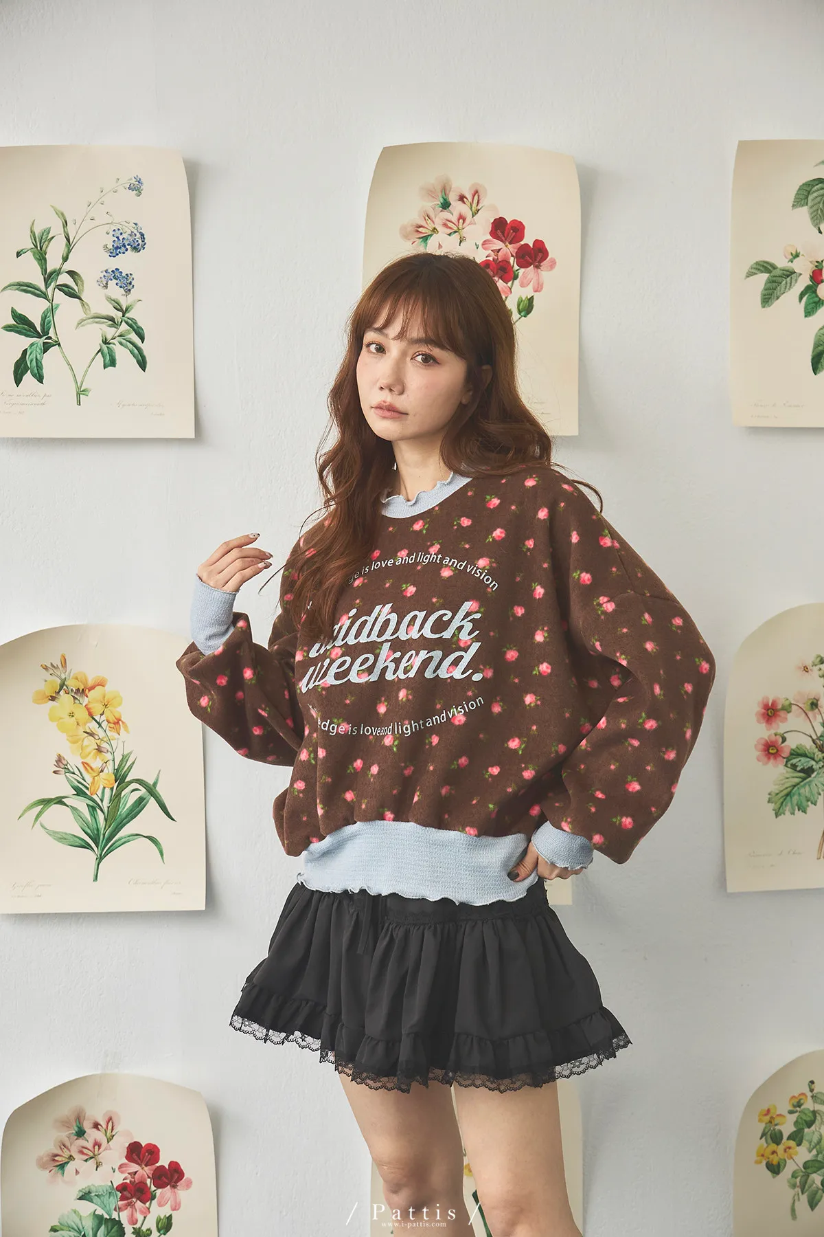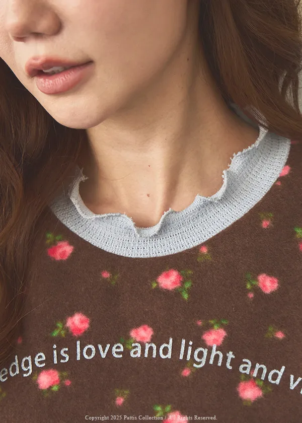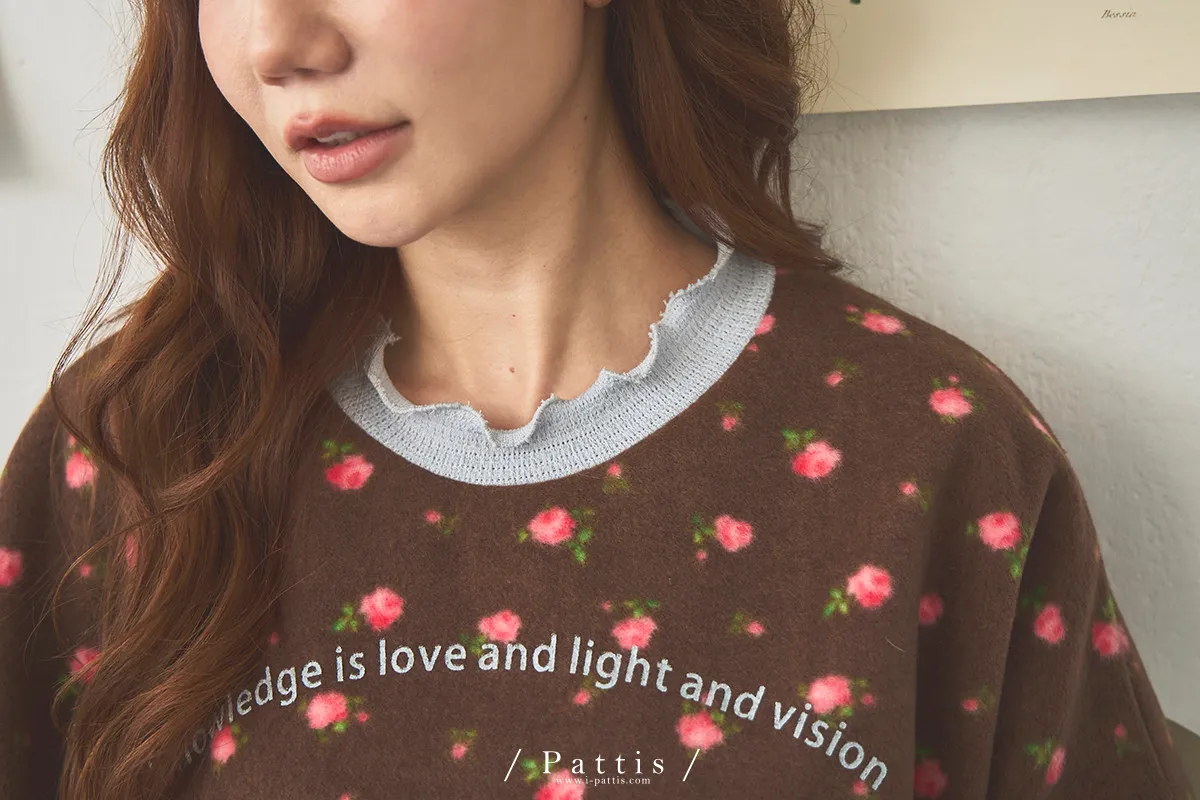 專屬冬日的小花農 | 小玫瑰雙色磨毛羅紋上衣(咖啡藍)