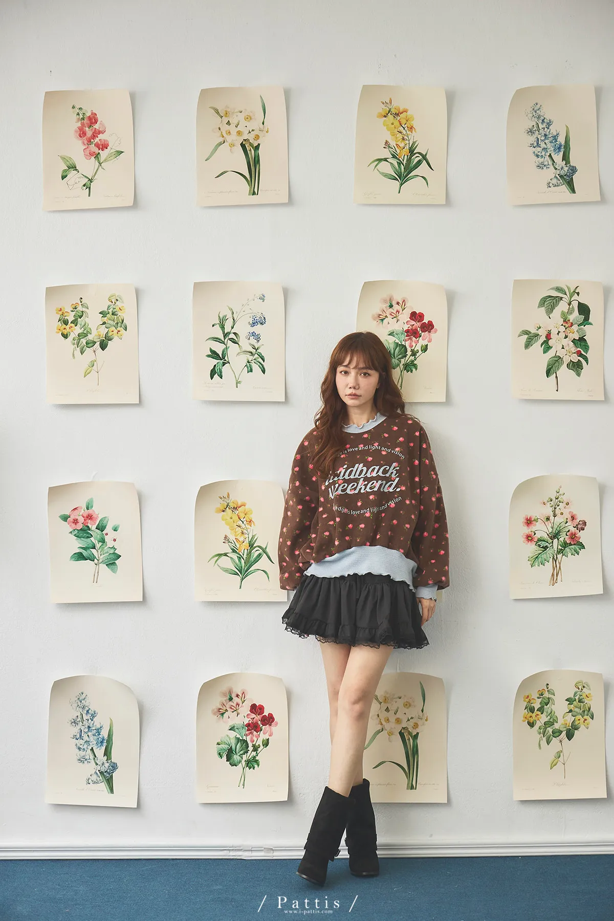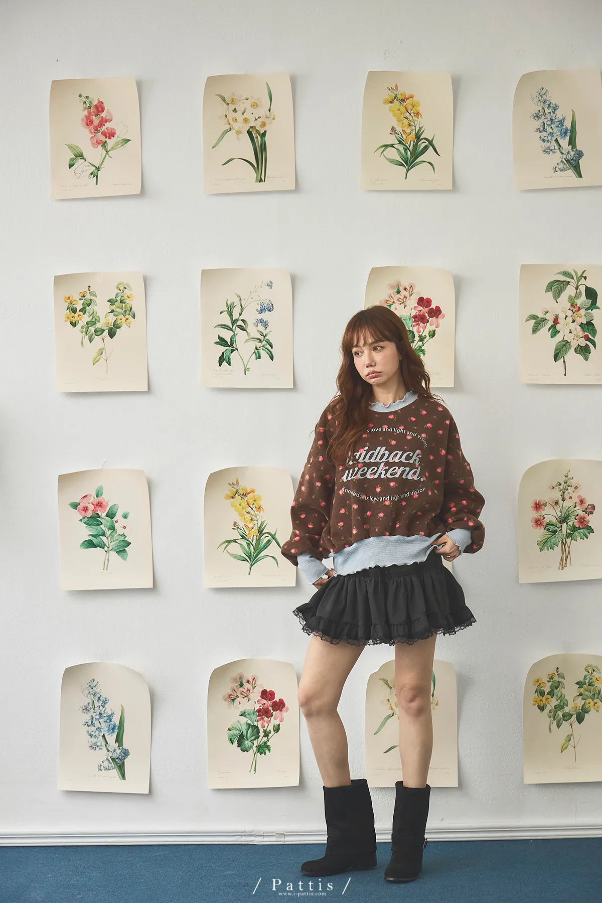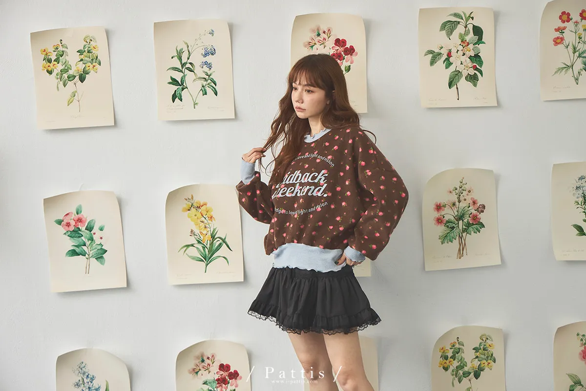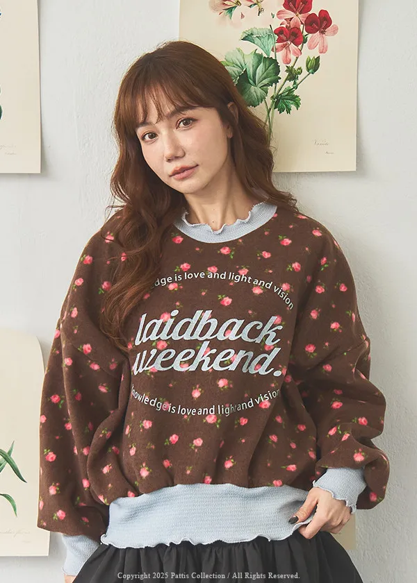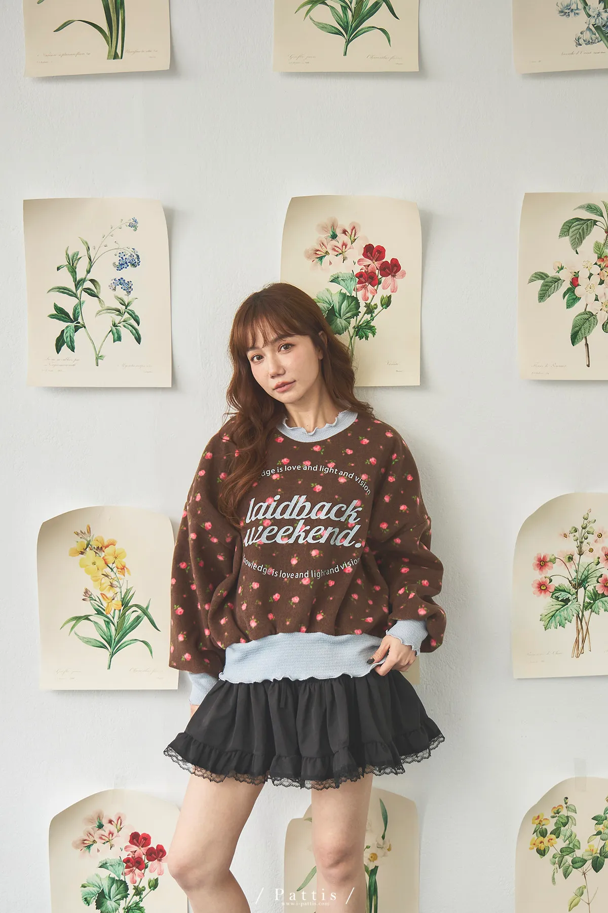 專屬冬日的小花農 | 小玫瑰雙色磨毛羅紋上衣(咖啡藍)