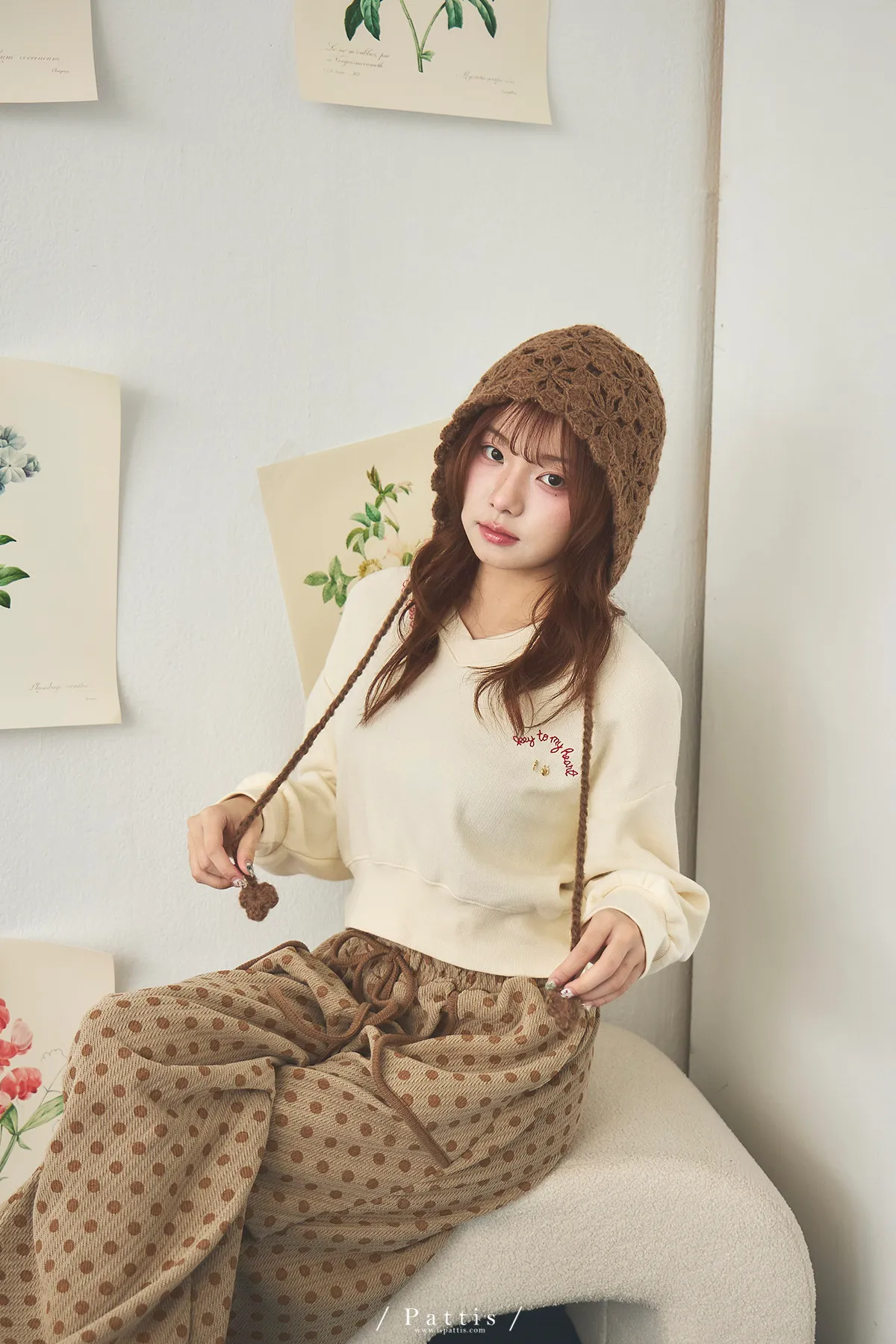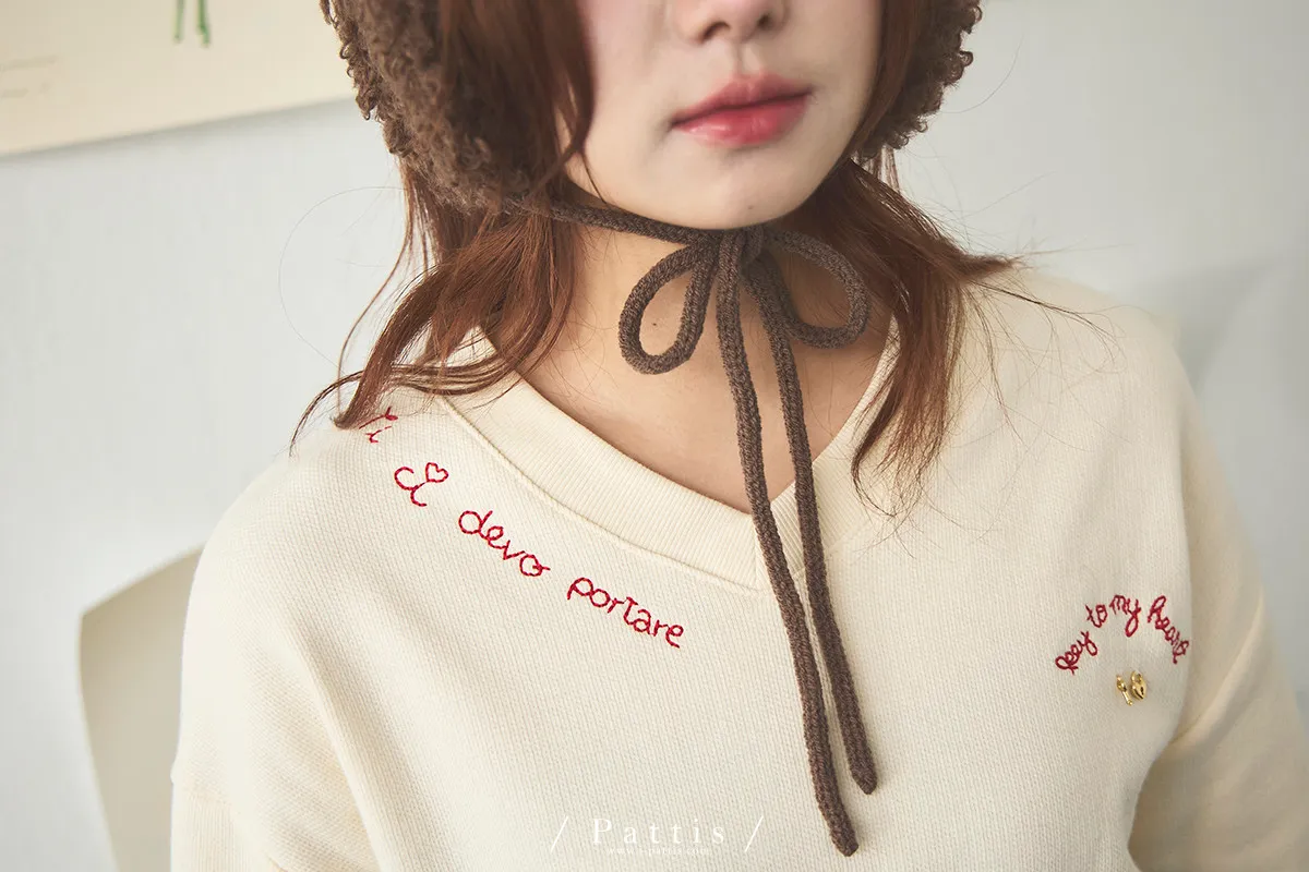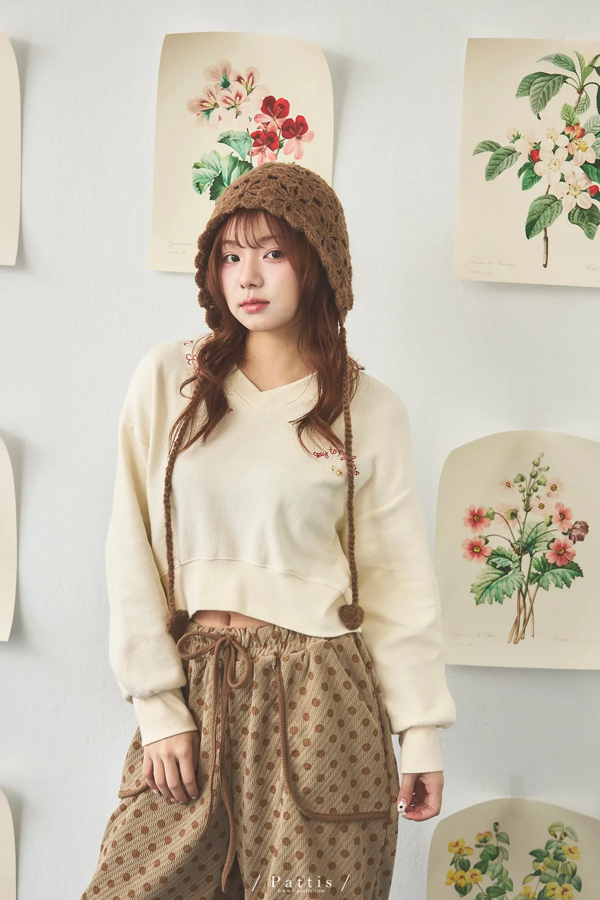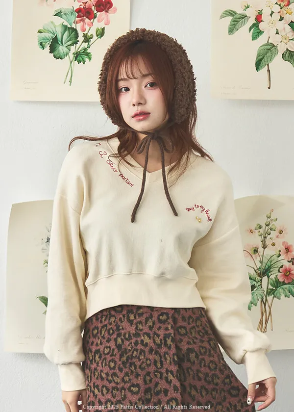 這次隨心所欲吧 | 小金墜飾刺繡字母V領短版簡約上衣(米黃)