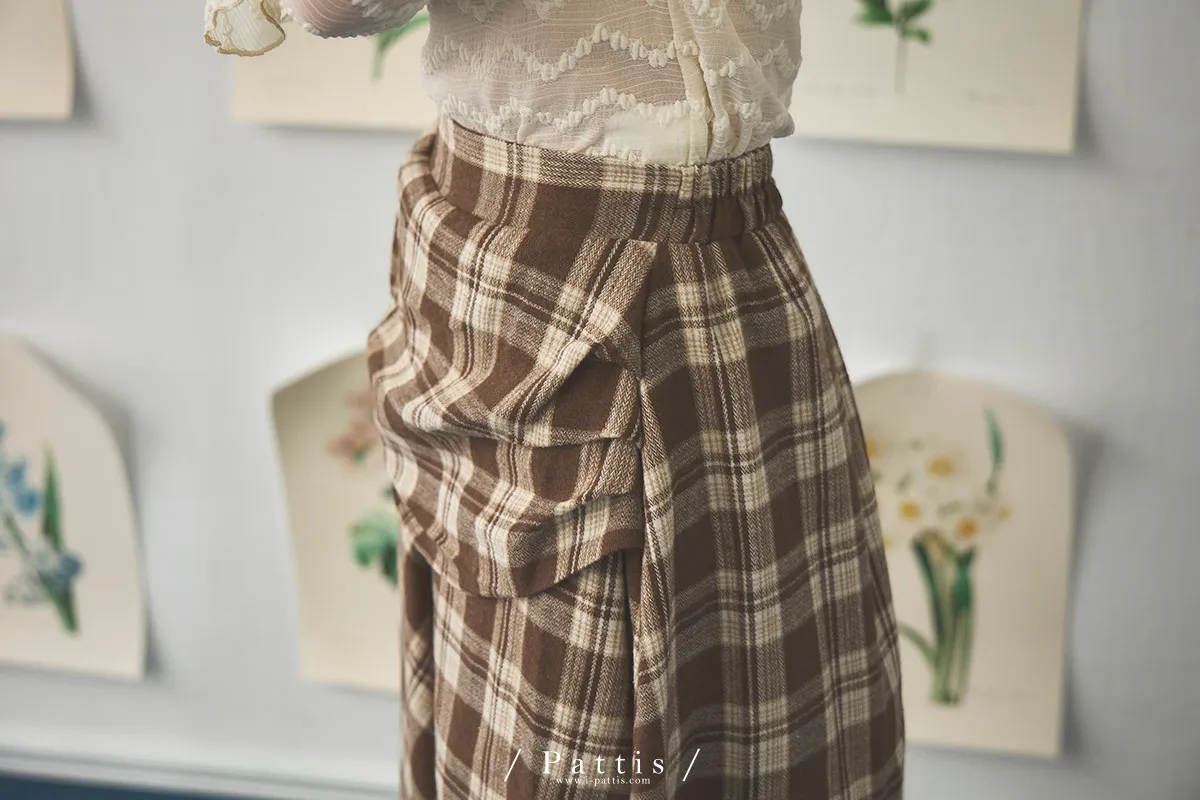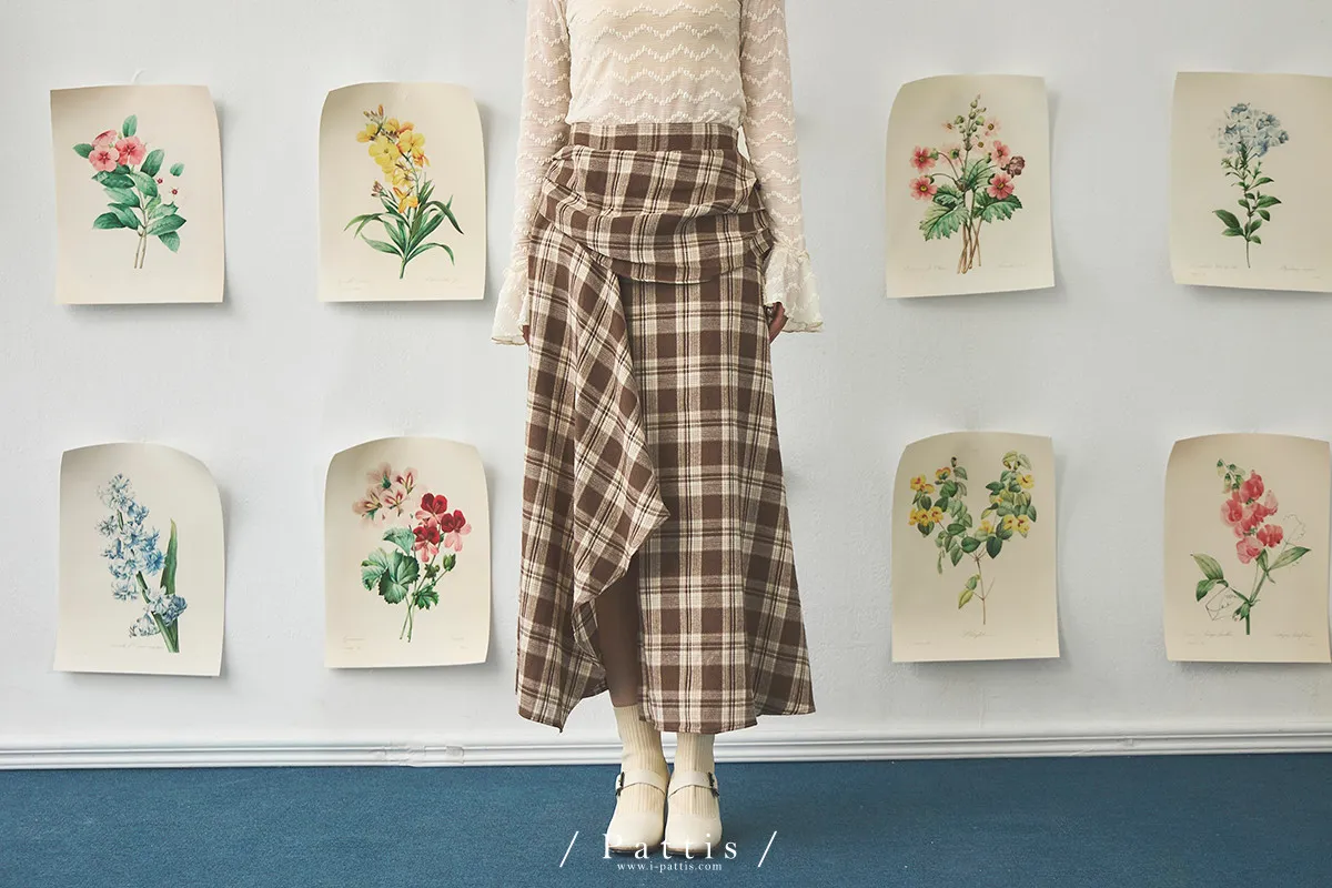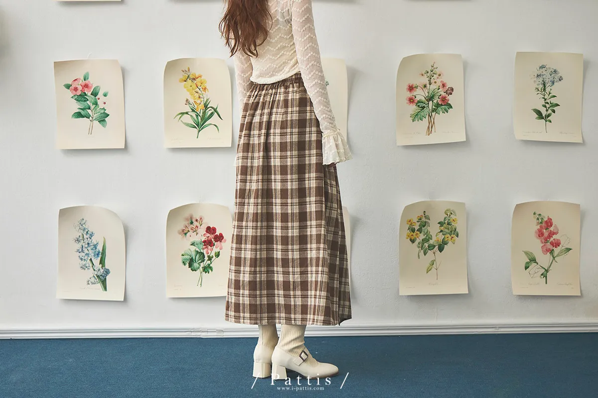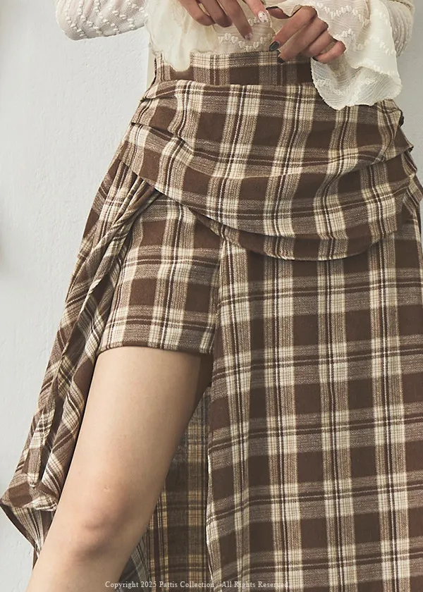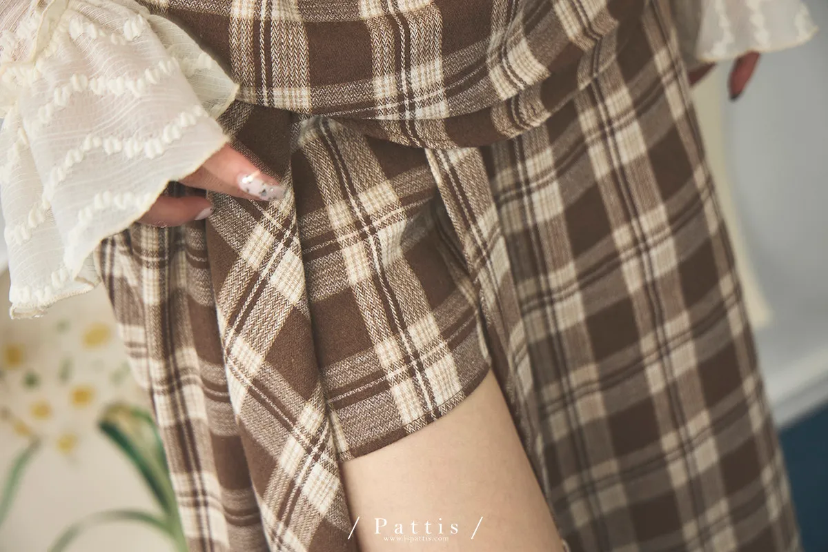 在草稿上畫八分音符 | 側開叉格紋弧邊內短褲長裙(咖啡)