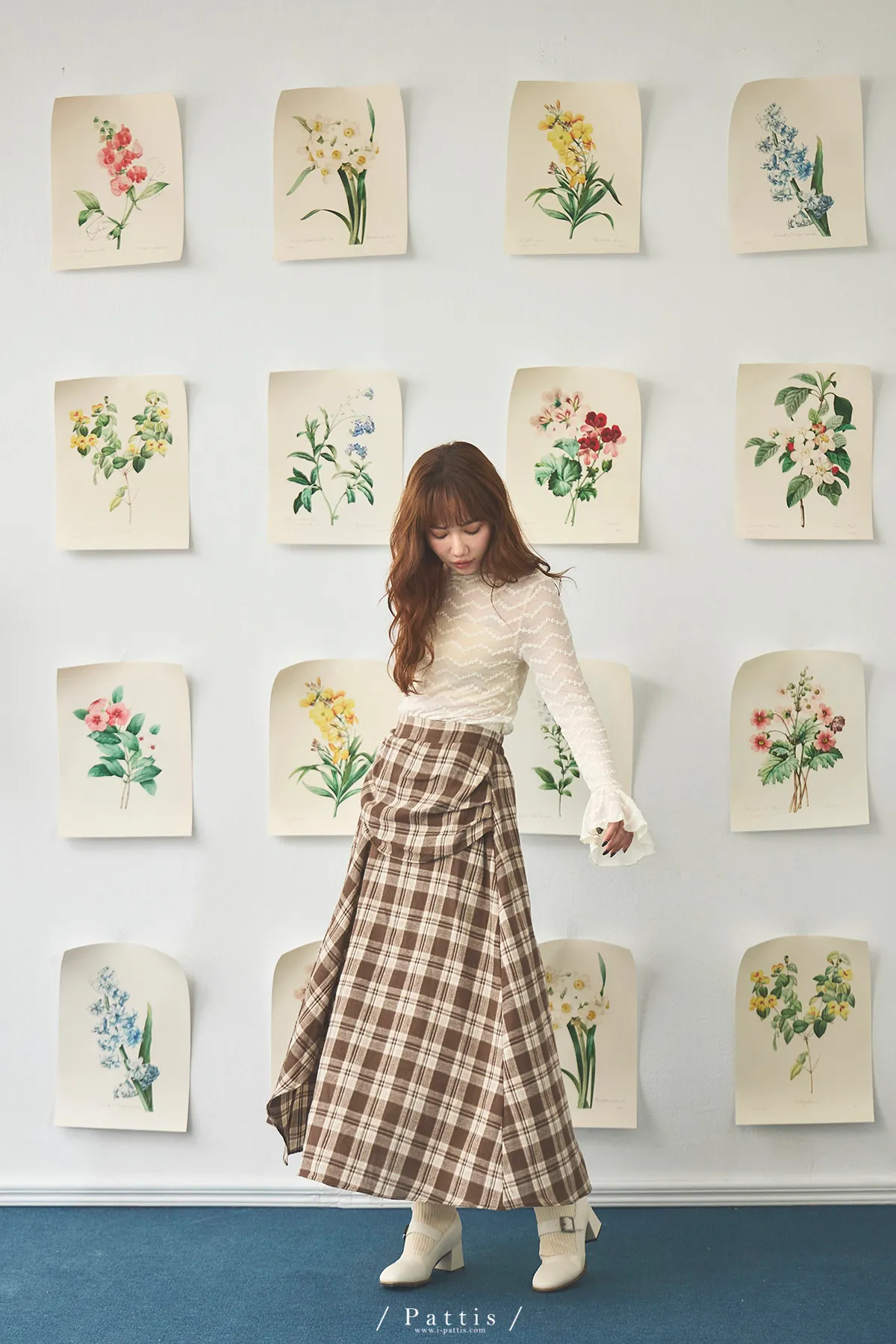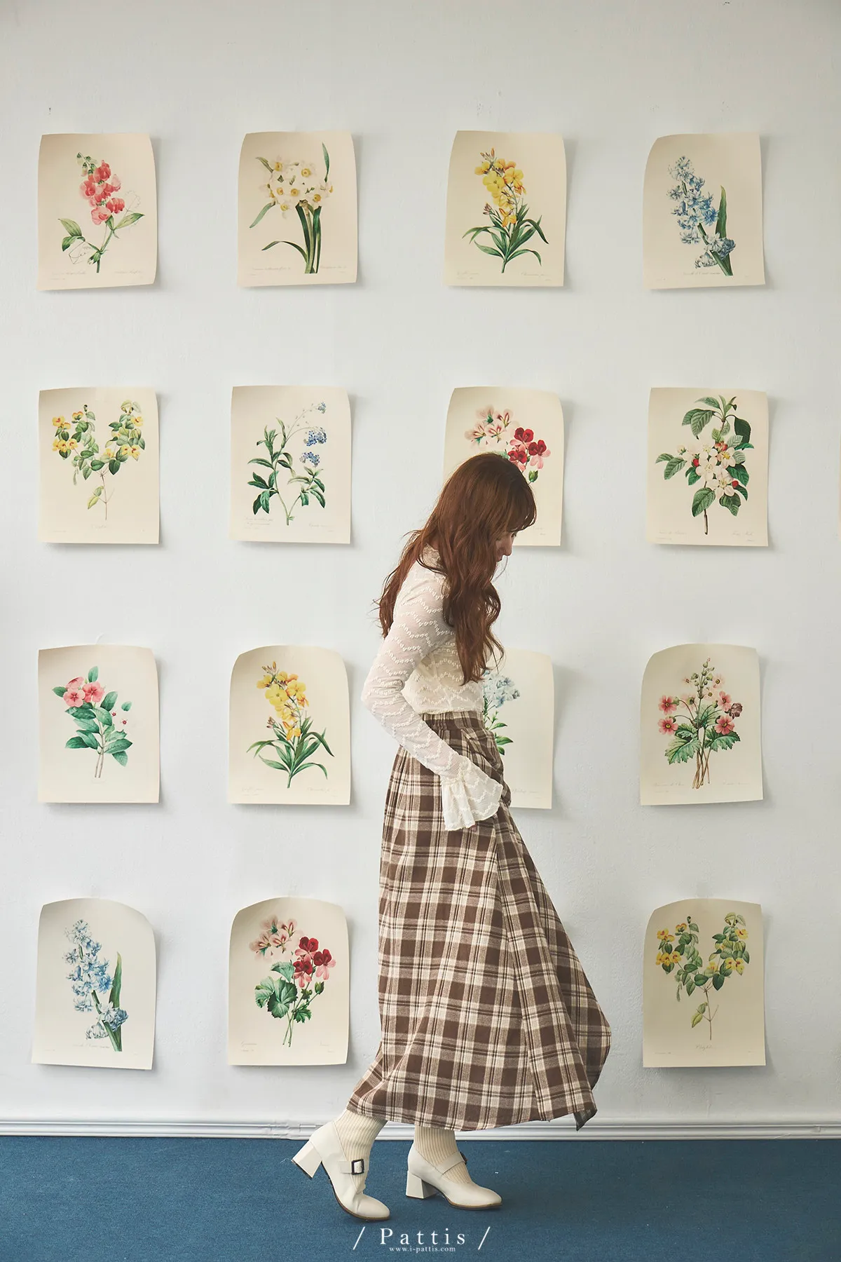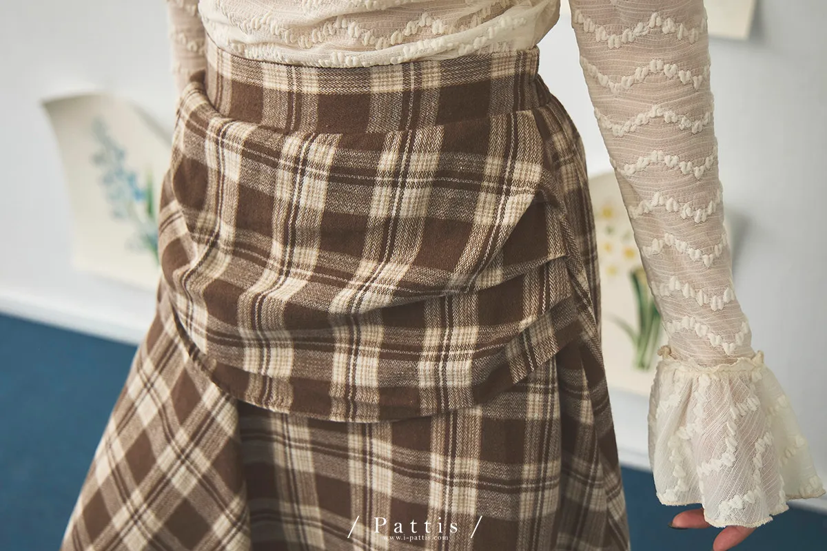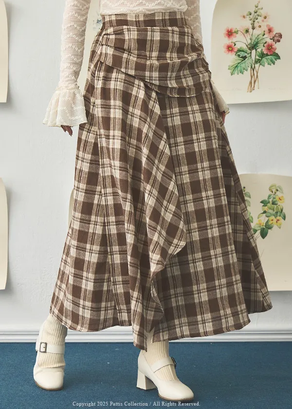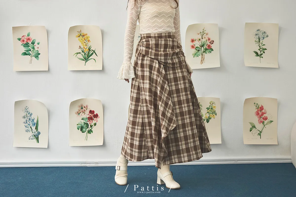 在草稿上畫八分音符 | 側開叉格紋弧邊內短褲長裙(咖啡)