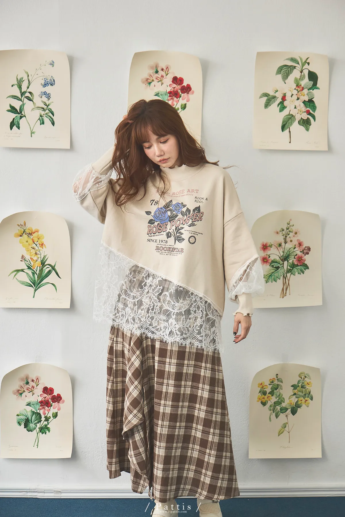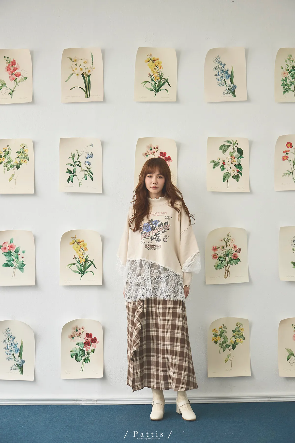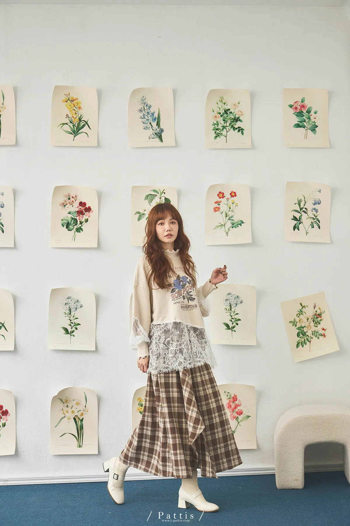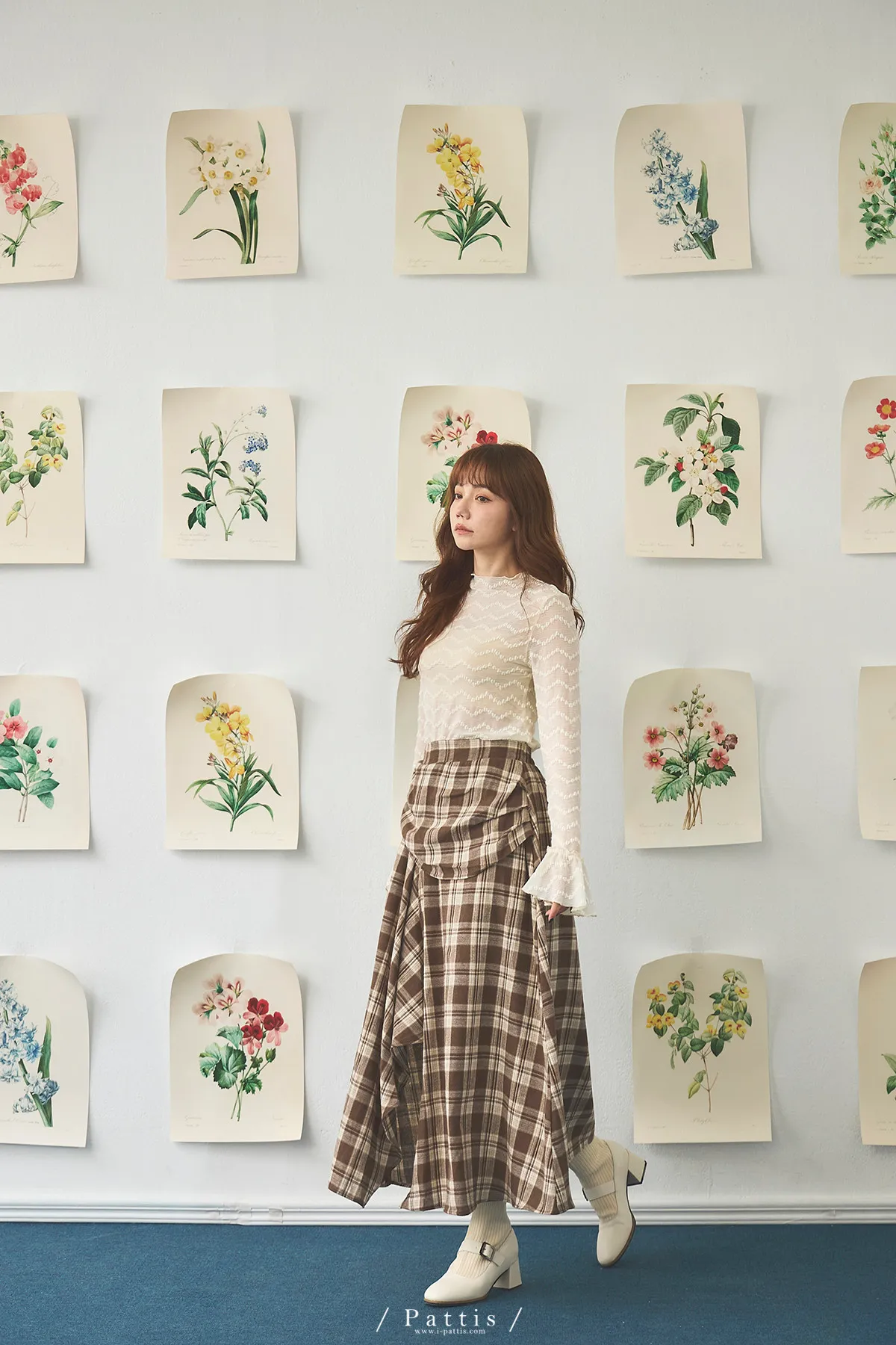 在草稿上畫八分音符 | 側開叉格紋弧邊內短褲長裙(咖啡)