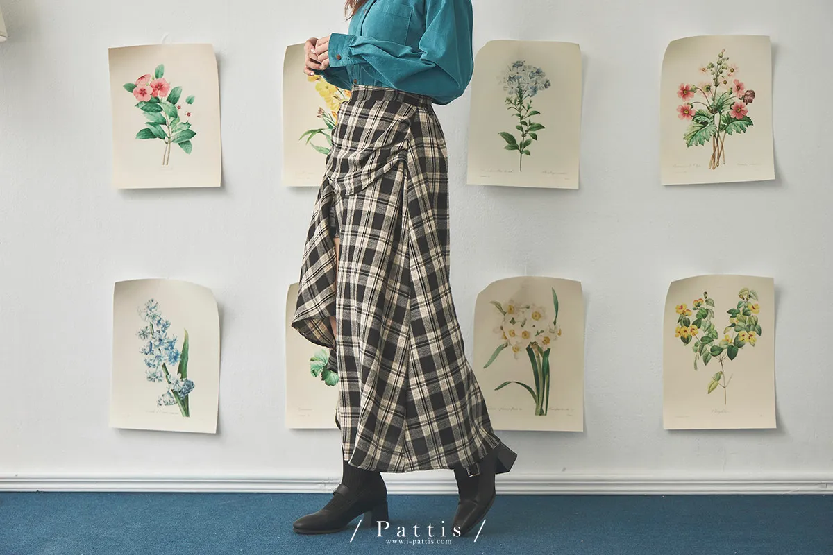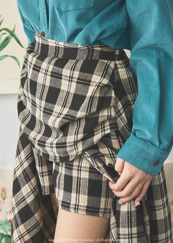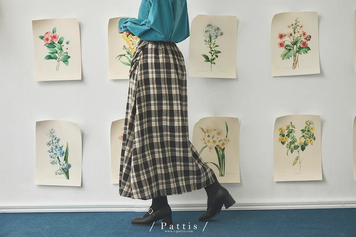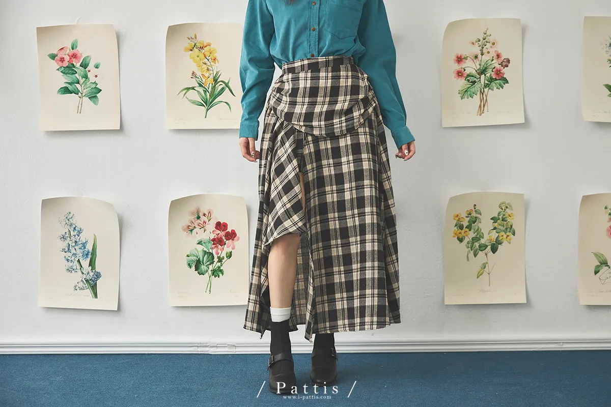 在草稿上畫八分音符 | 側開叉格紋弧邊內短褲長裙(黑)