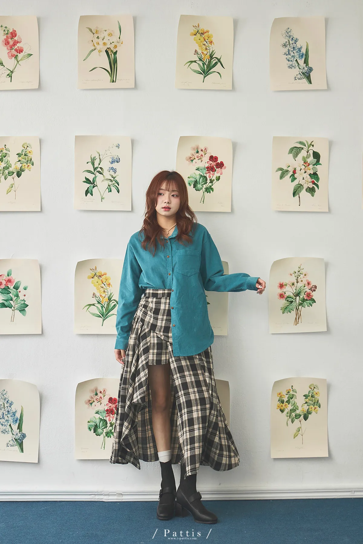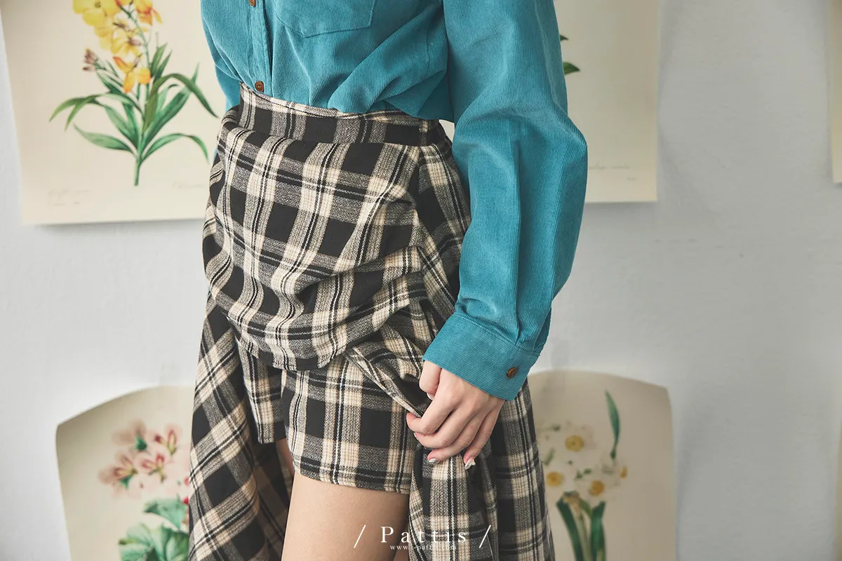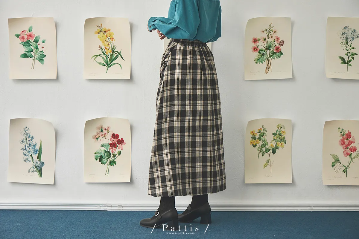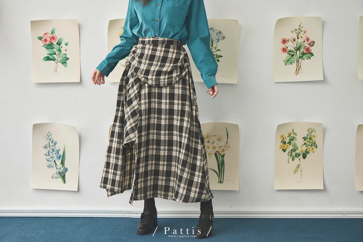 在草稿上畫八分音符 | 側開叉格紋弧邊內短褲長裙(黑)