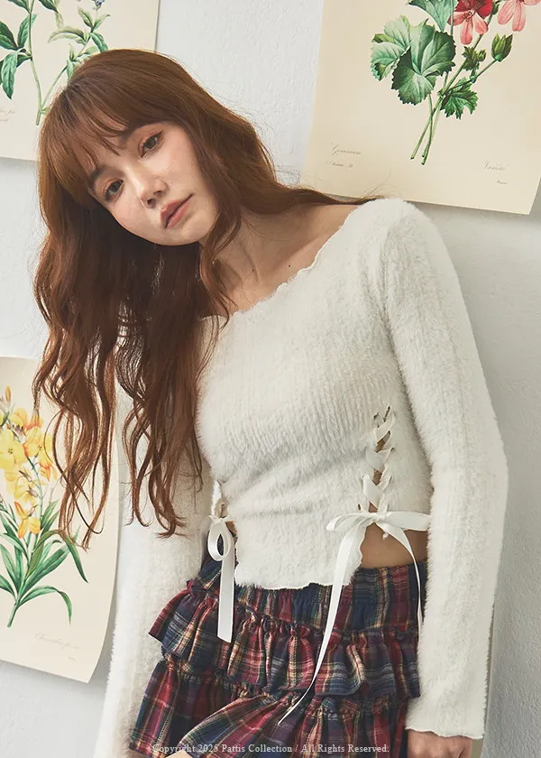 陷入戀情的麗莎 | 雙蝴蝶結綁帶船領毛衣(米白)