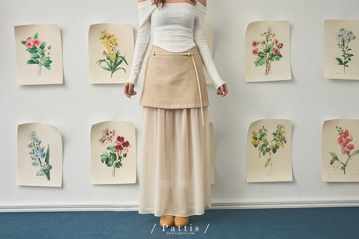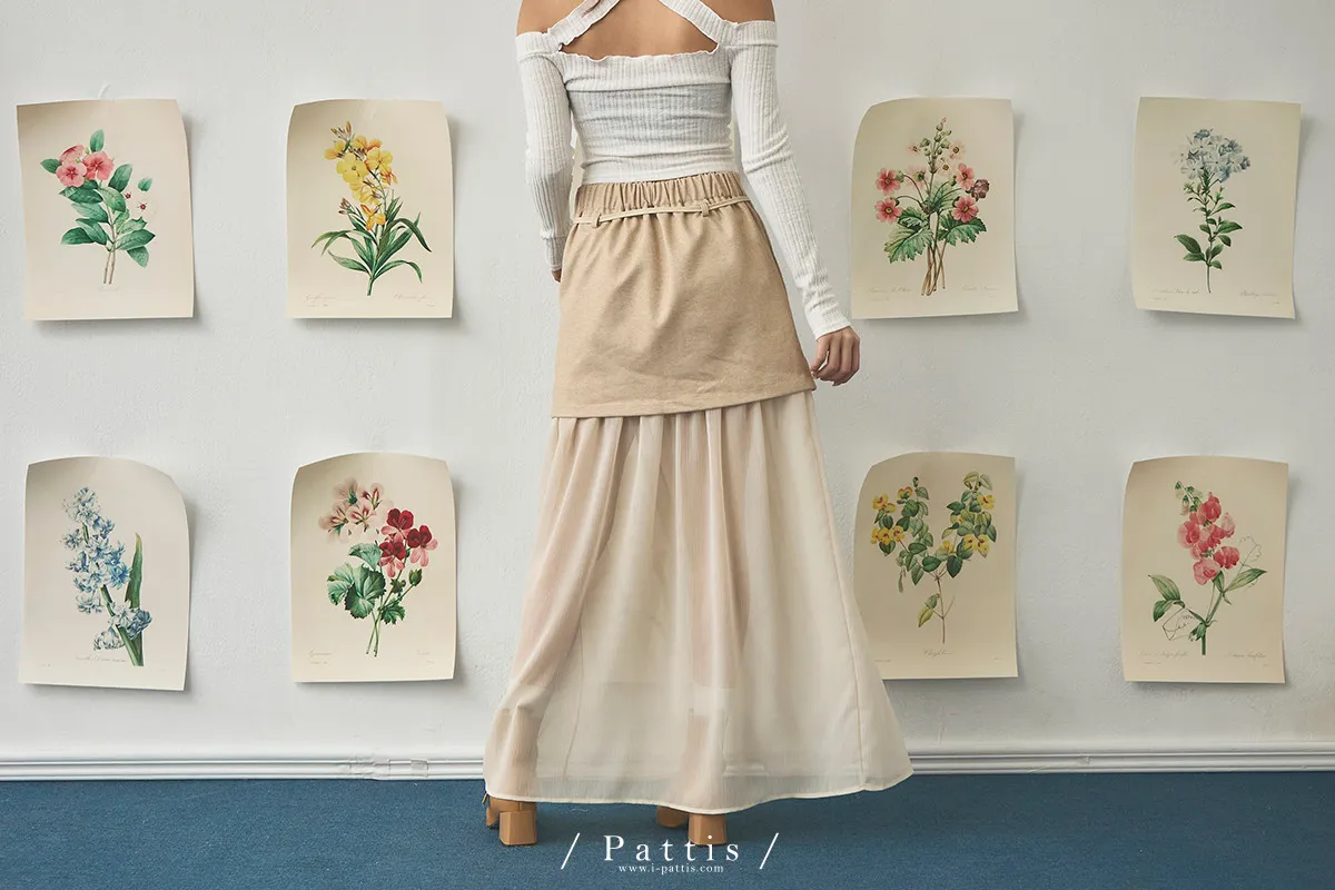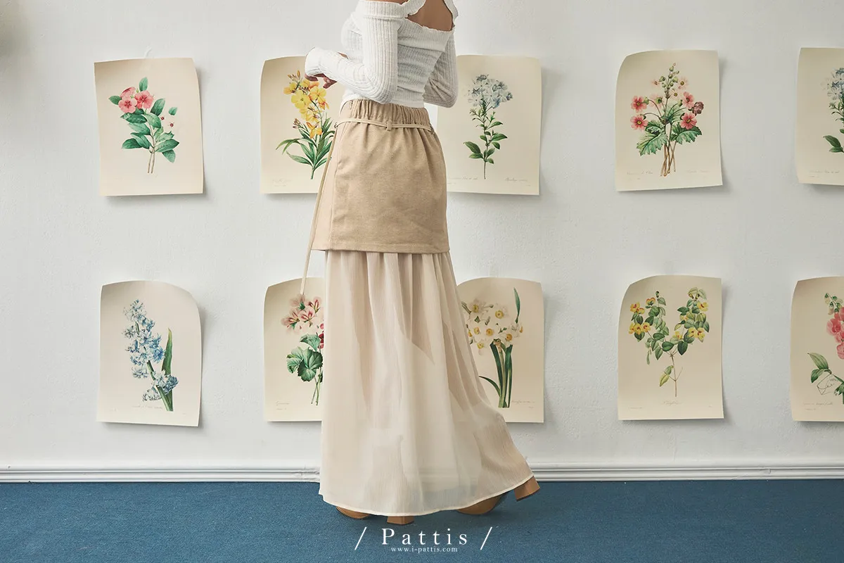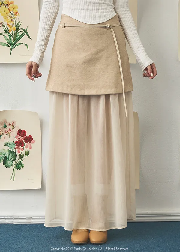 不接未顯示來電 | 附腰帶雙層拼接網紗長裙(米杏)