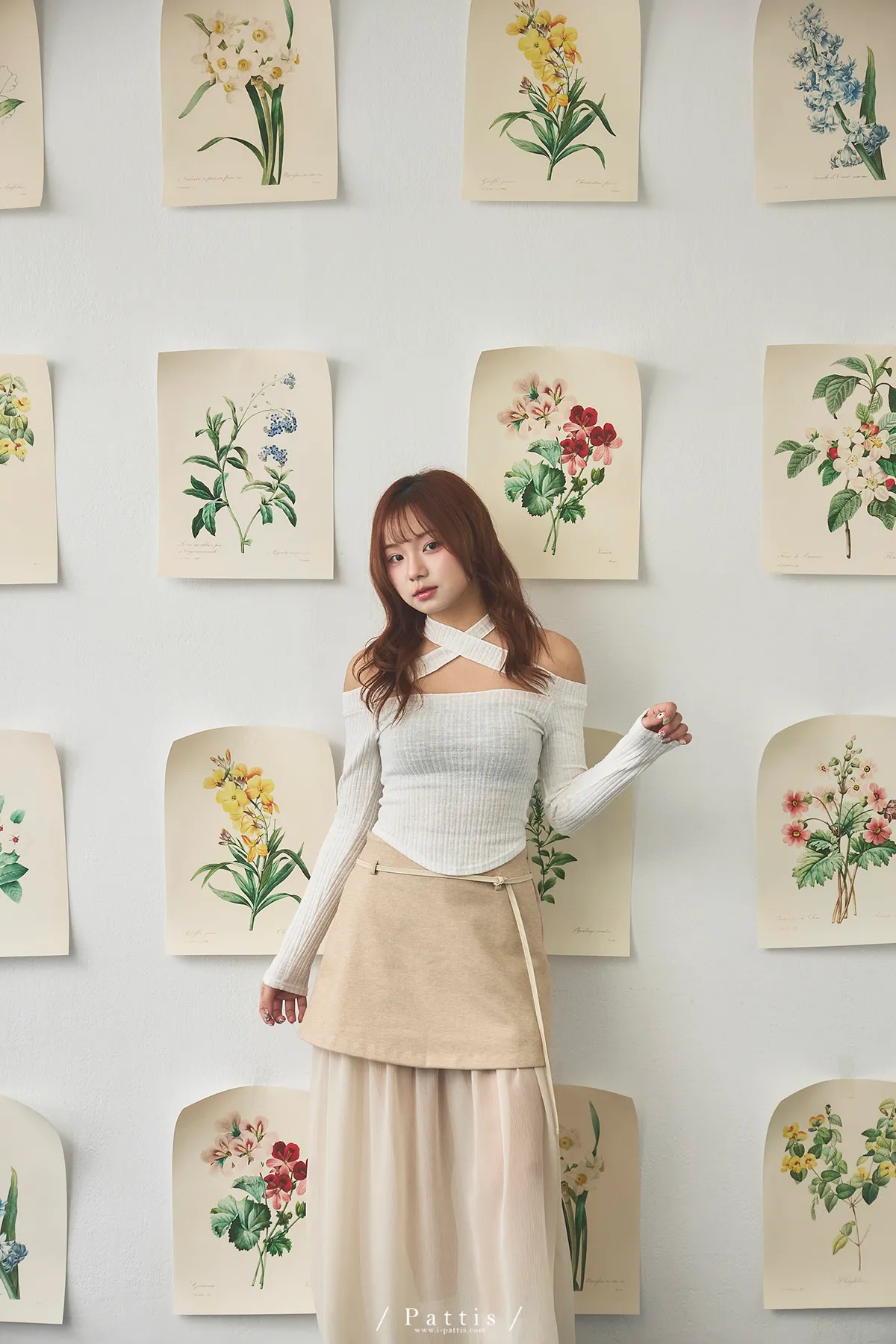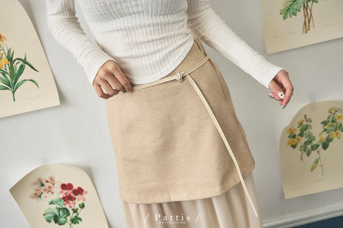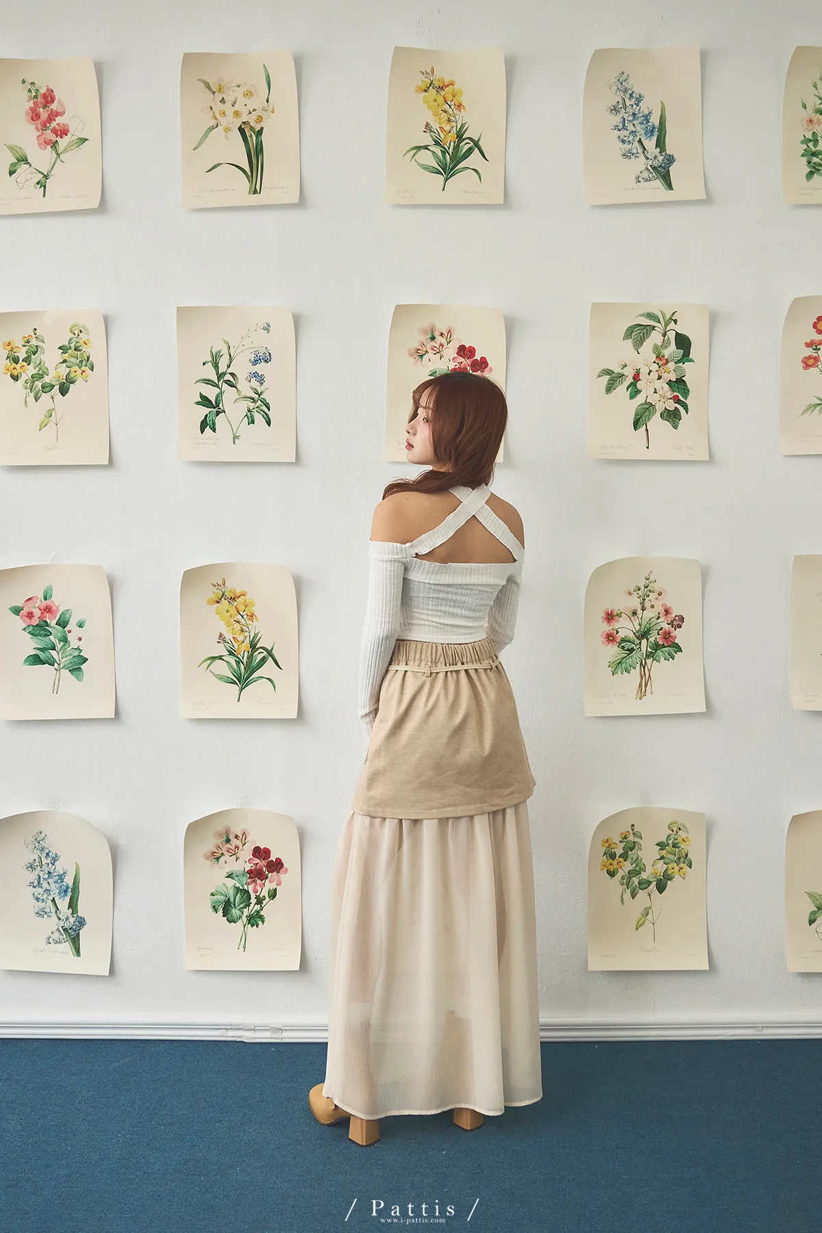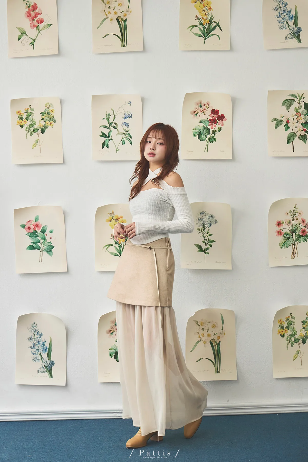 不接未顯示來電 | 附腰帶雙層拼接網紗長裙(米杏)