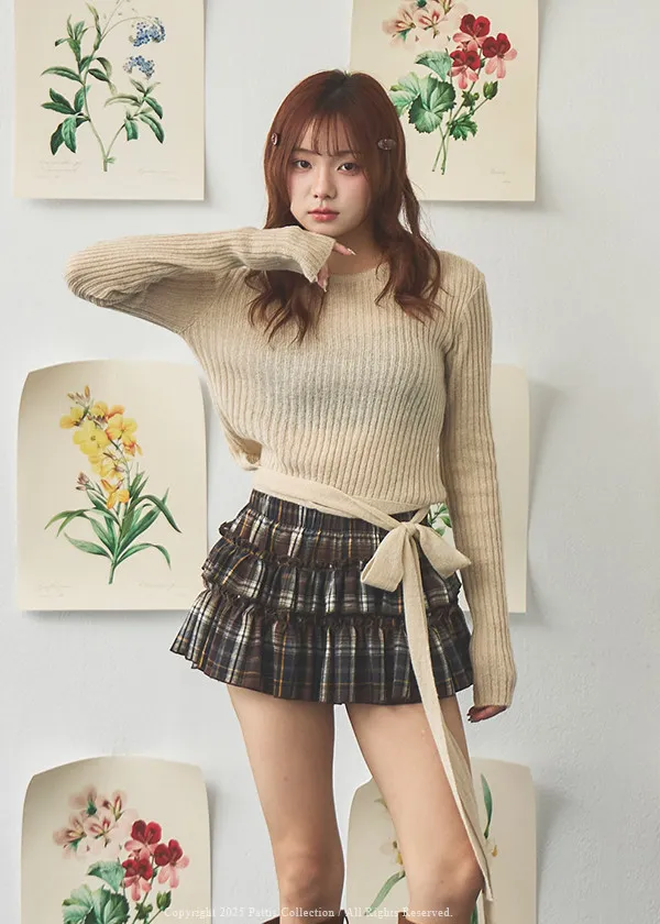 甜美追蹤器 | 羅紋側蝴蝶結綁帶上衣(米杏)
