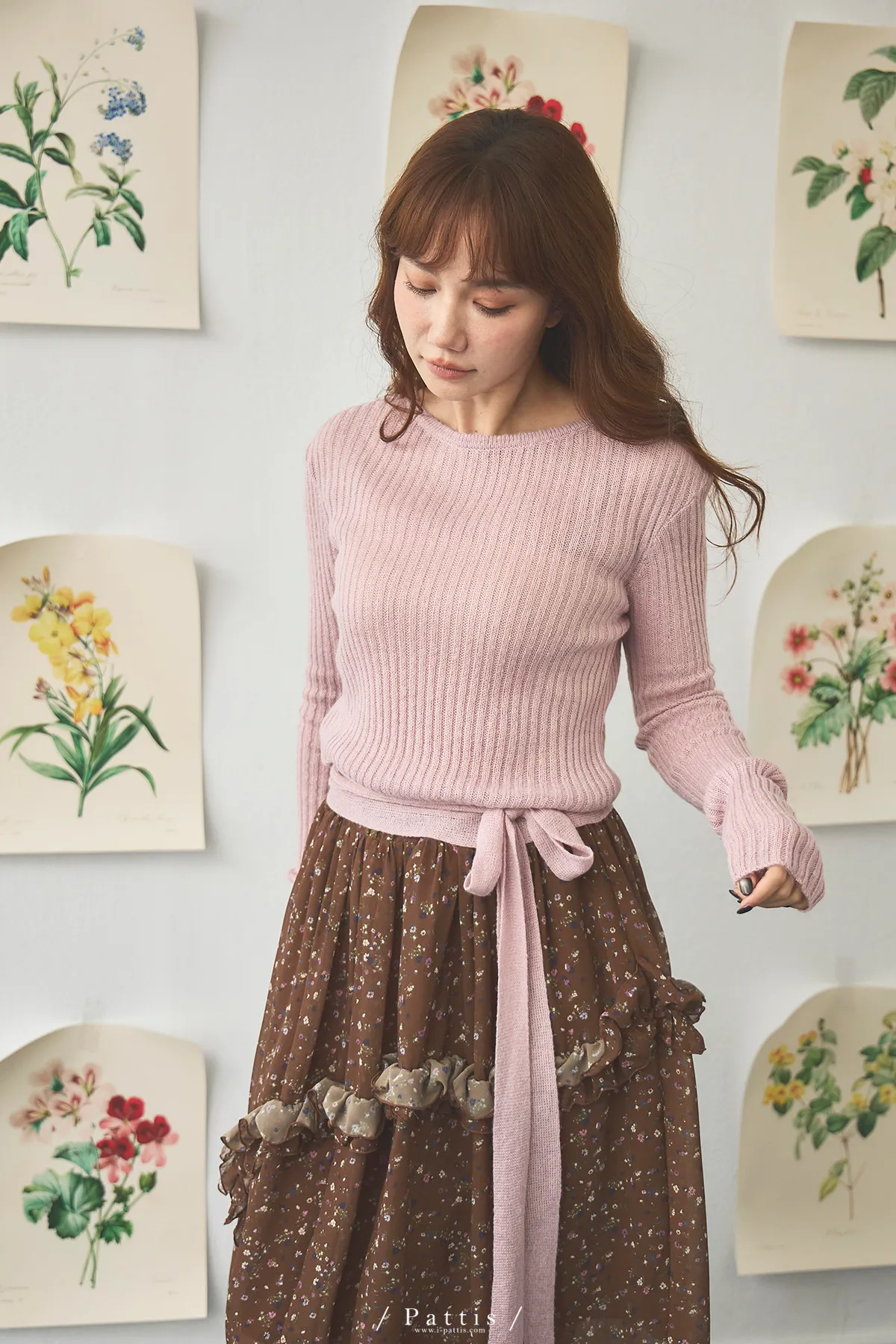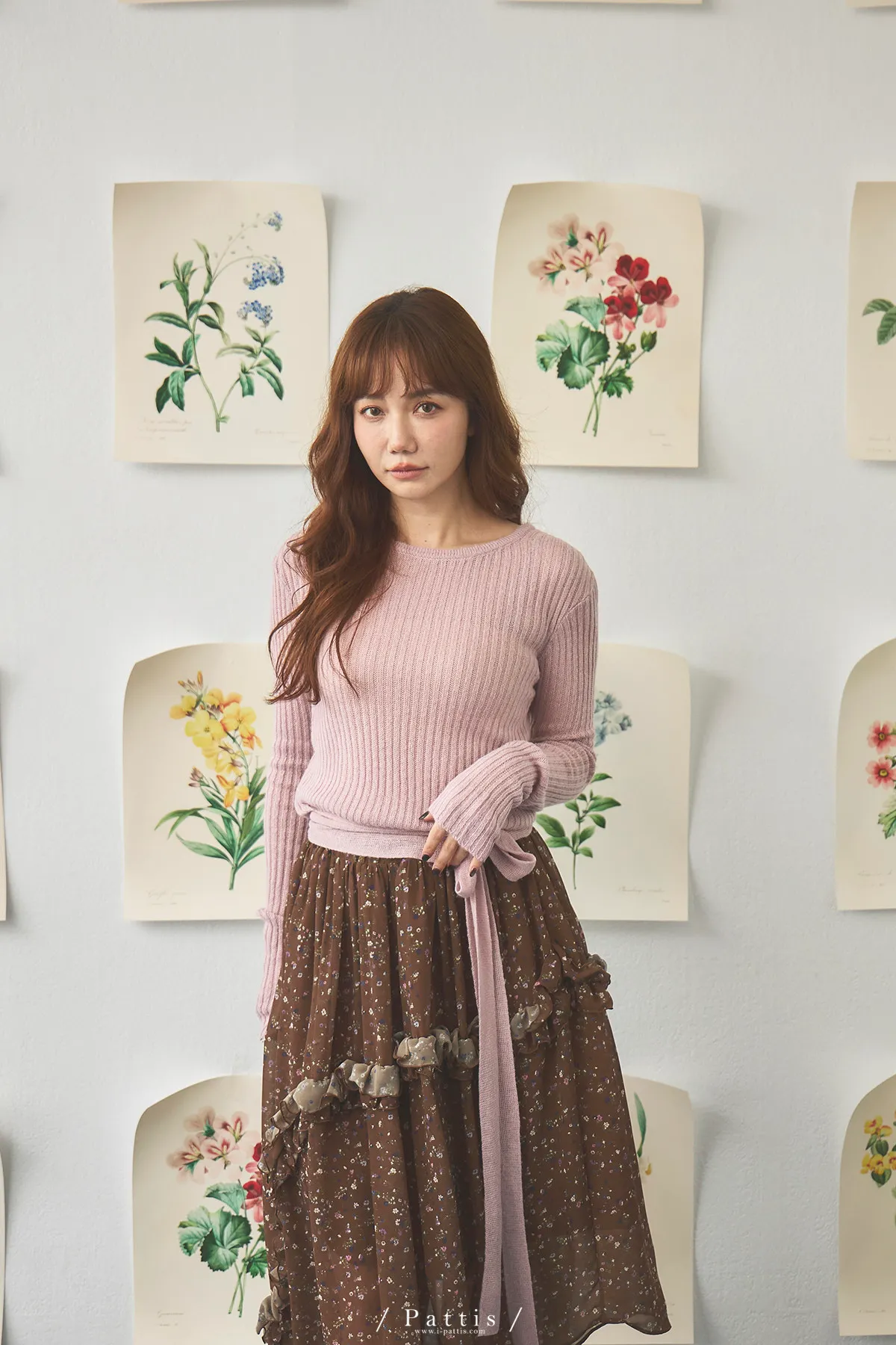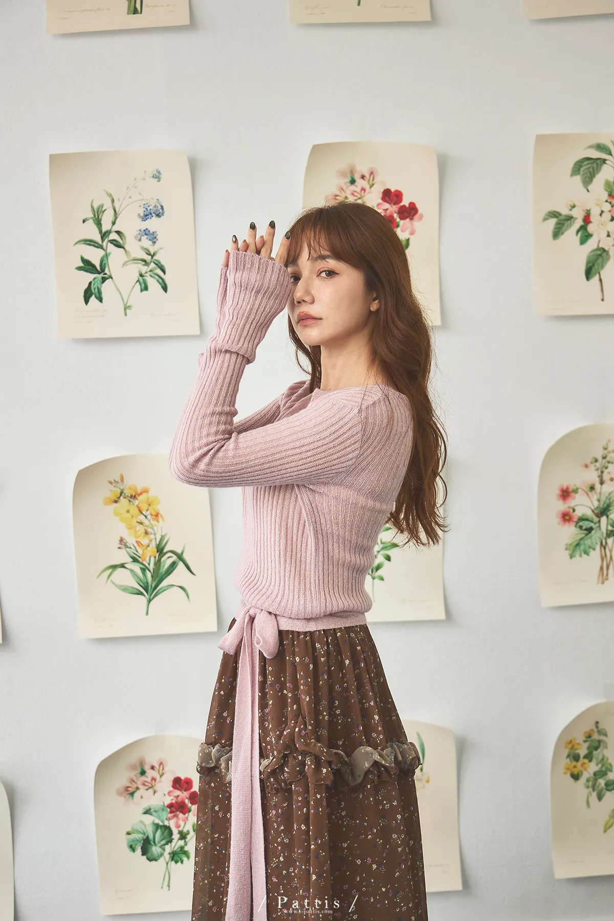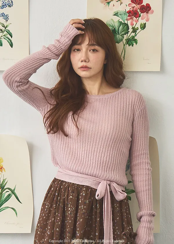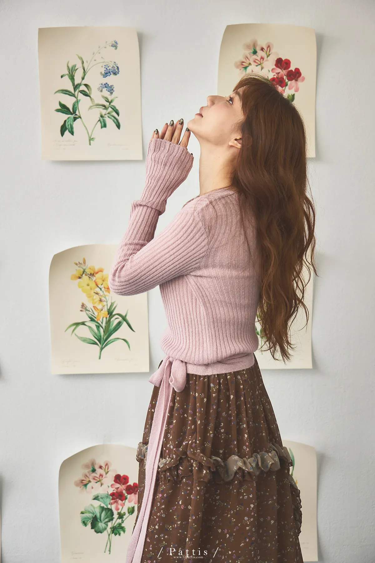甜美追蹤器 | 羅紋側蝴蝶結綁帶上衣(粉紫)