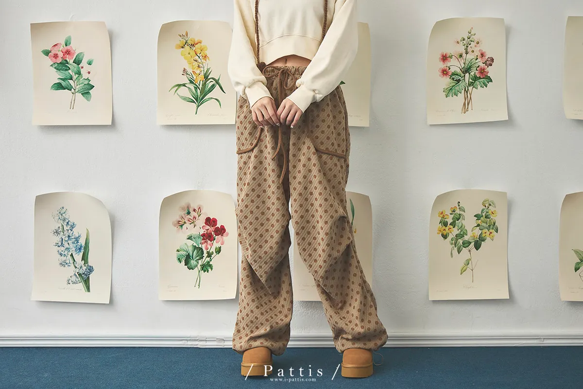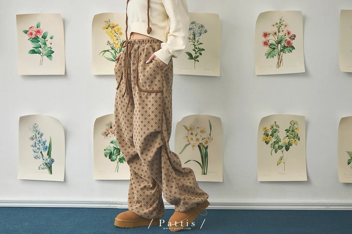 一整杯珍珠的力量 | 點點滾邊抓皺寬褲(米棕)