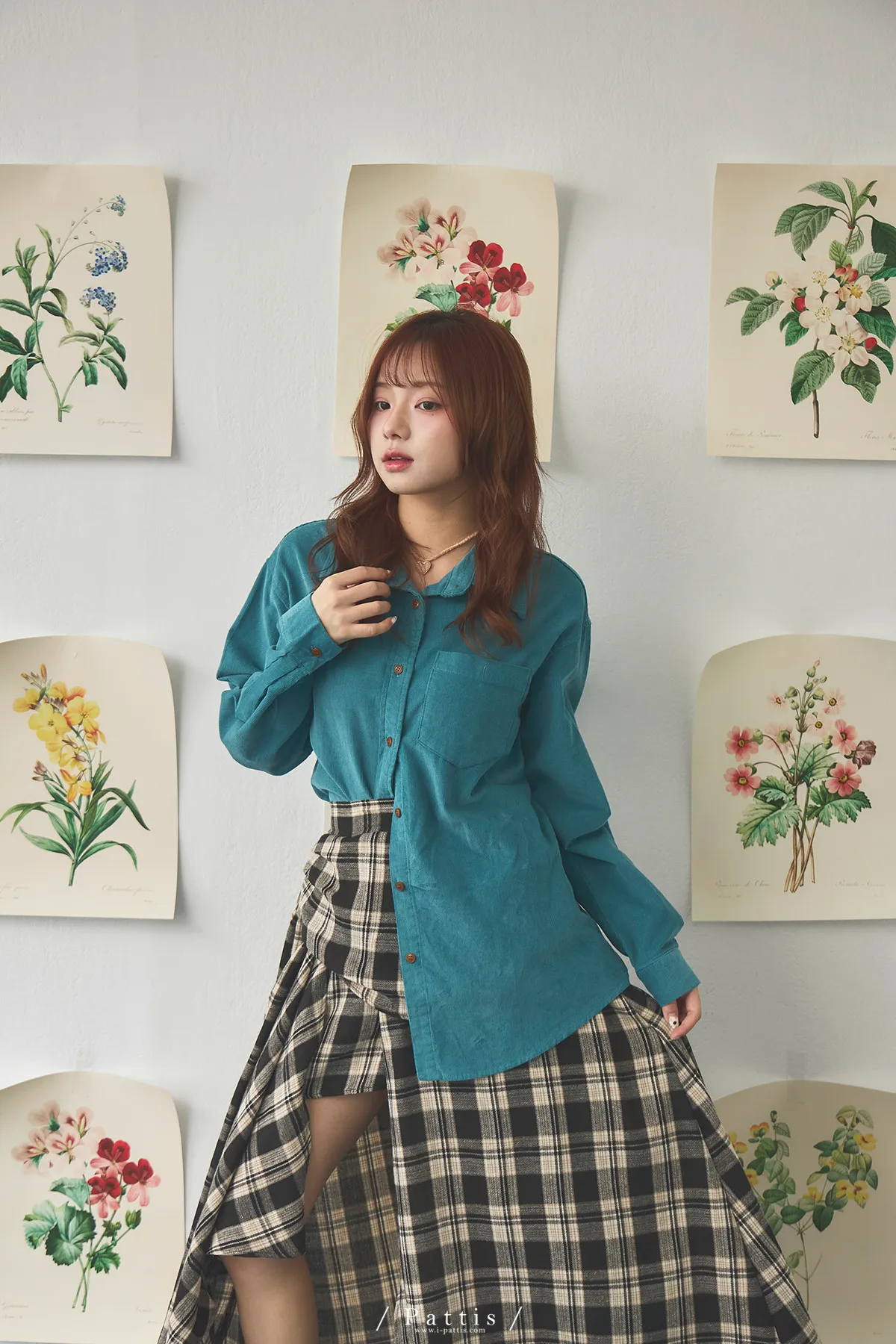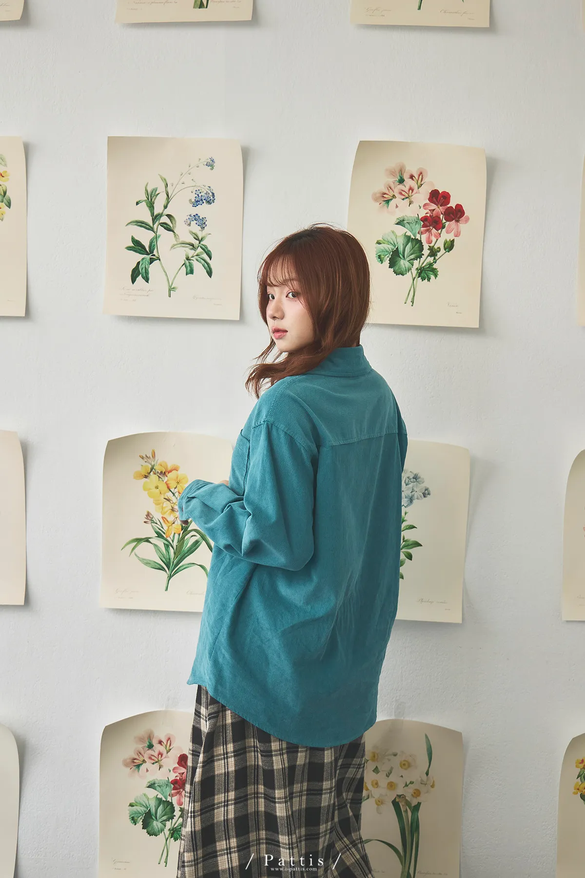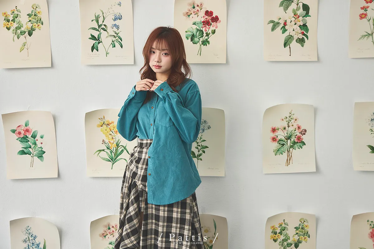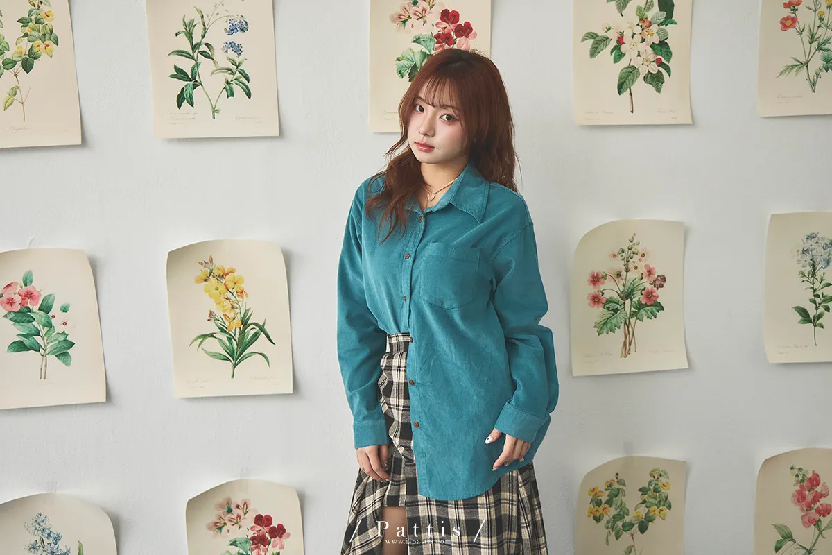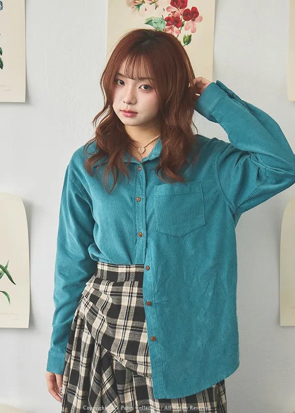 第二反派角色 | 燈心絨鈕扣襯衫上衣(亮藍綠)