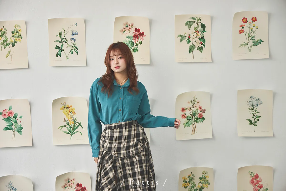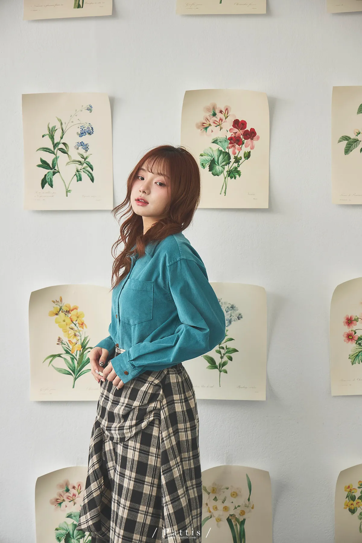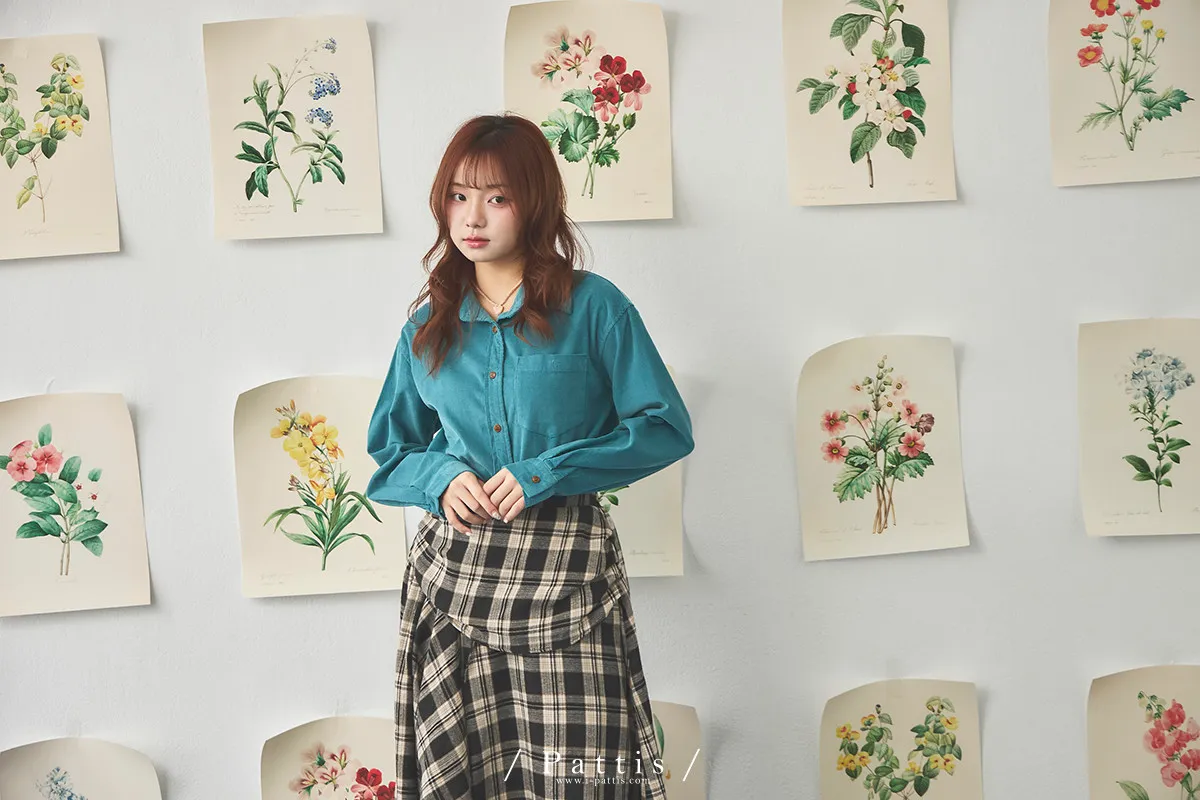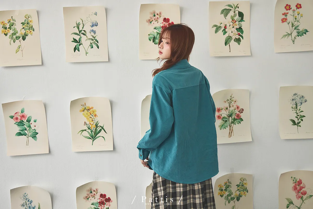 第二反派角色 | 燈心絨鈕扣襯衫上衣(亮藍綠)