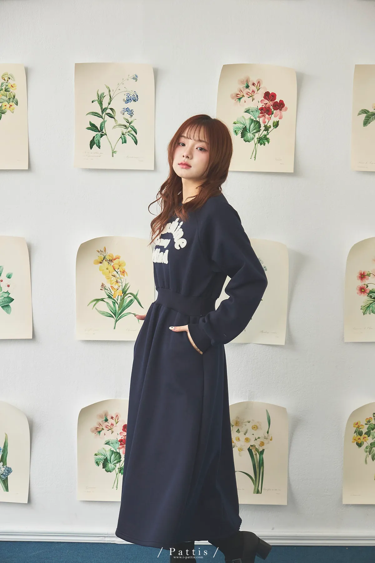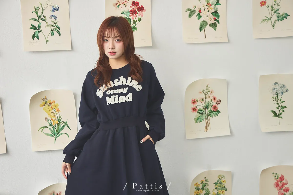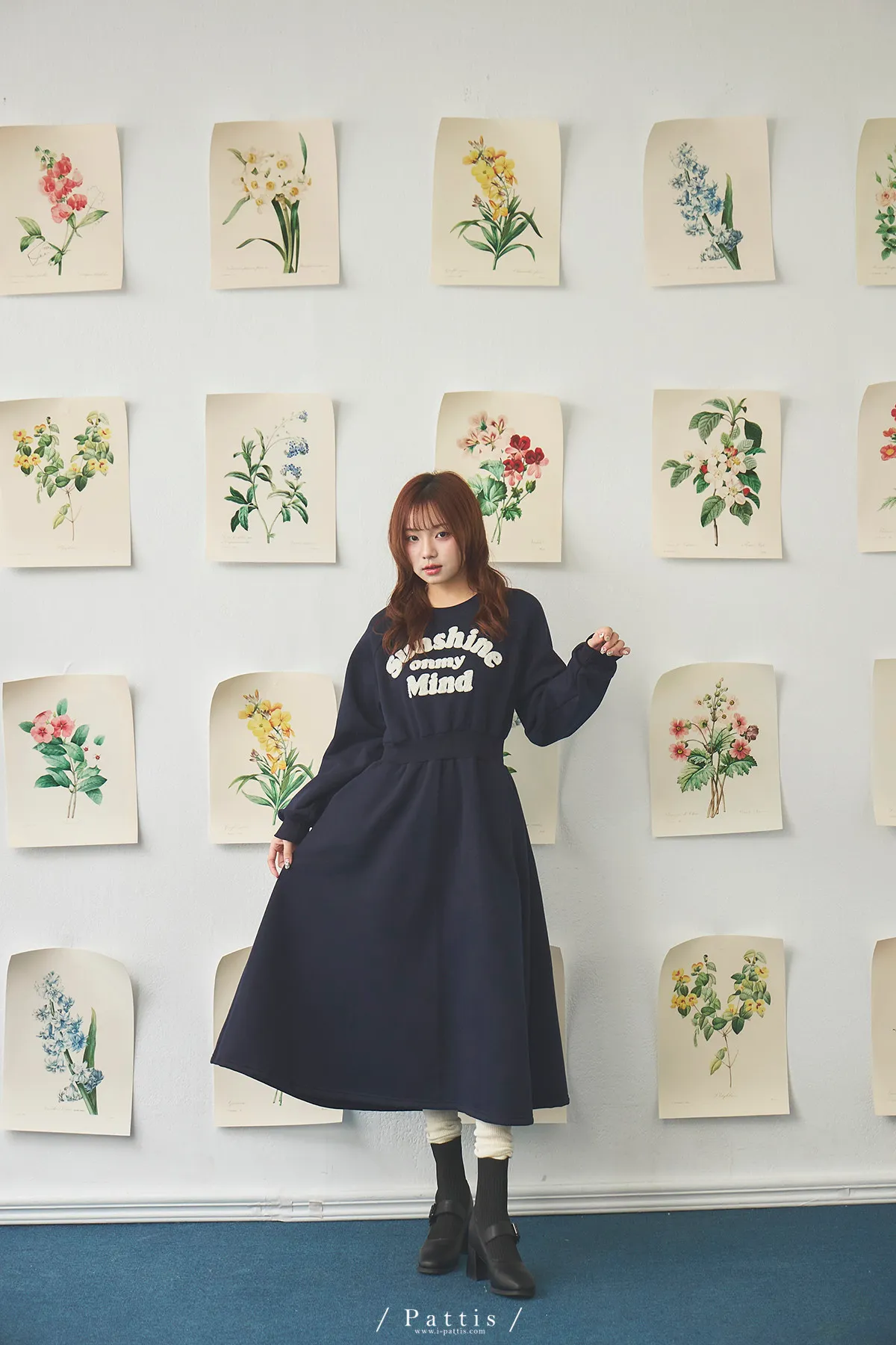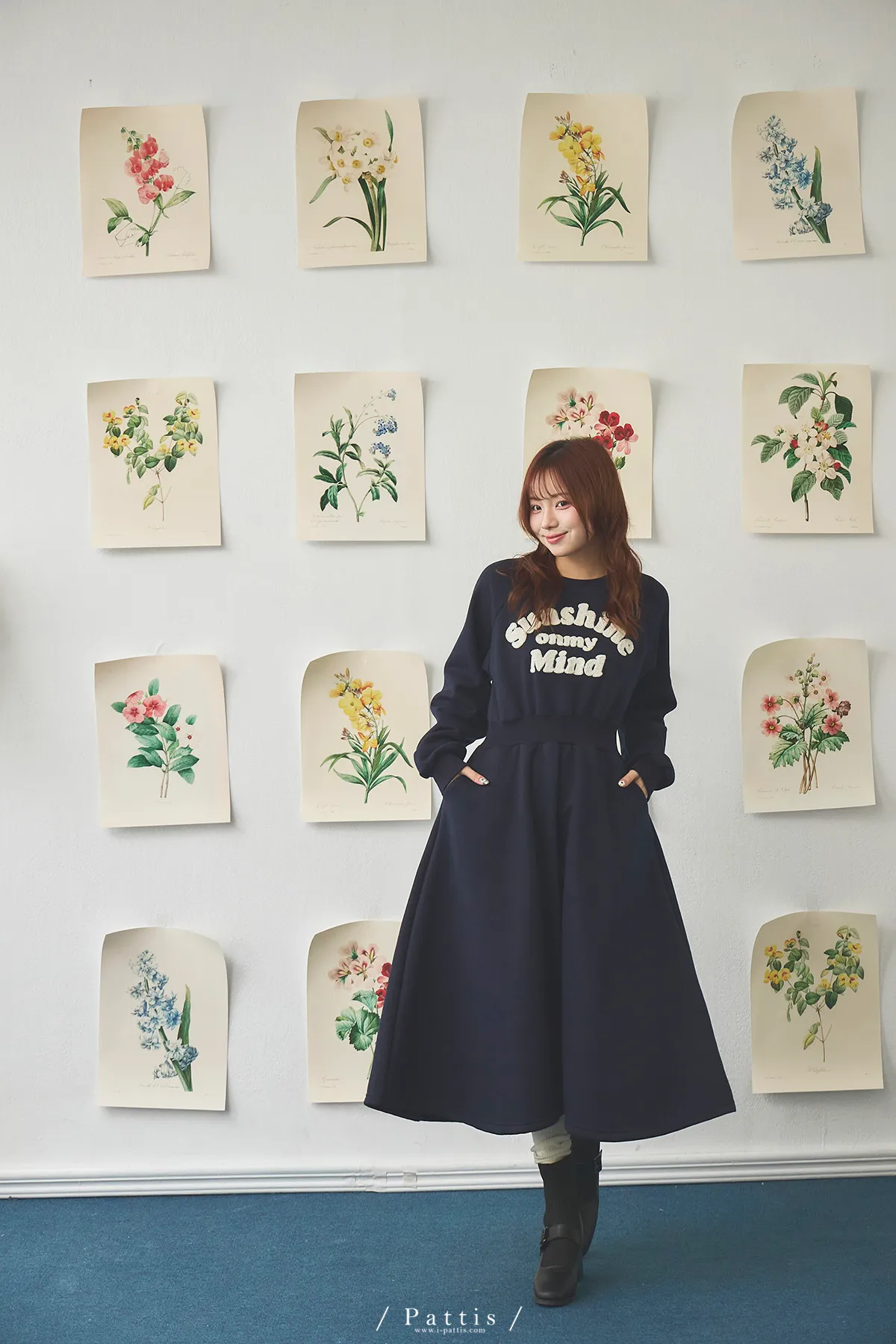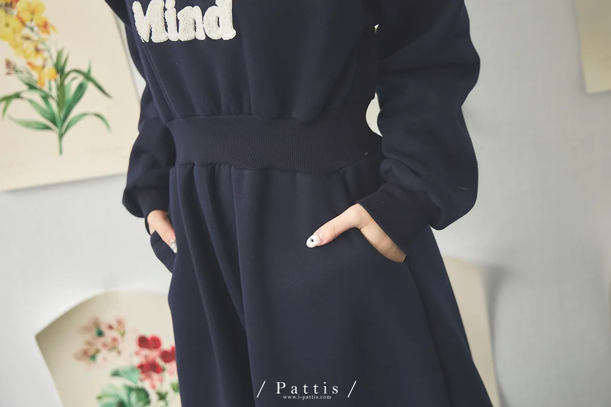 溫柔偏執狂 | 蓬蓬毛字母內刷毛圓領洋裝(深藍)