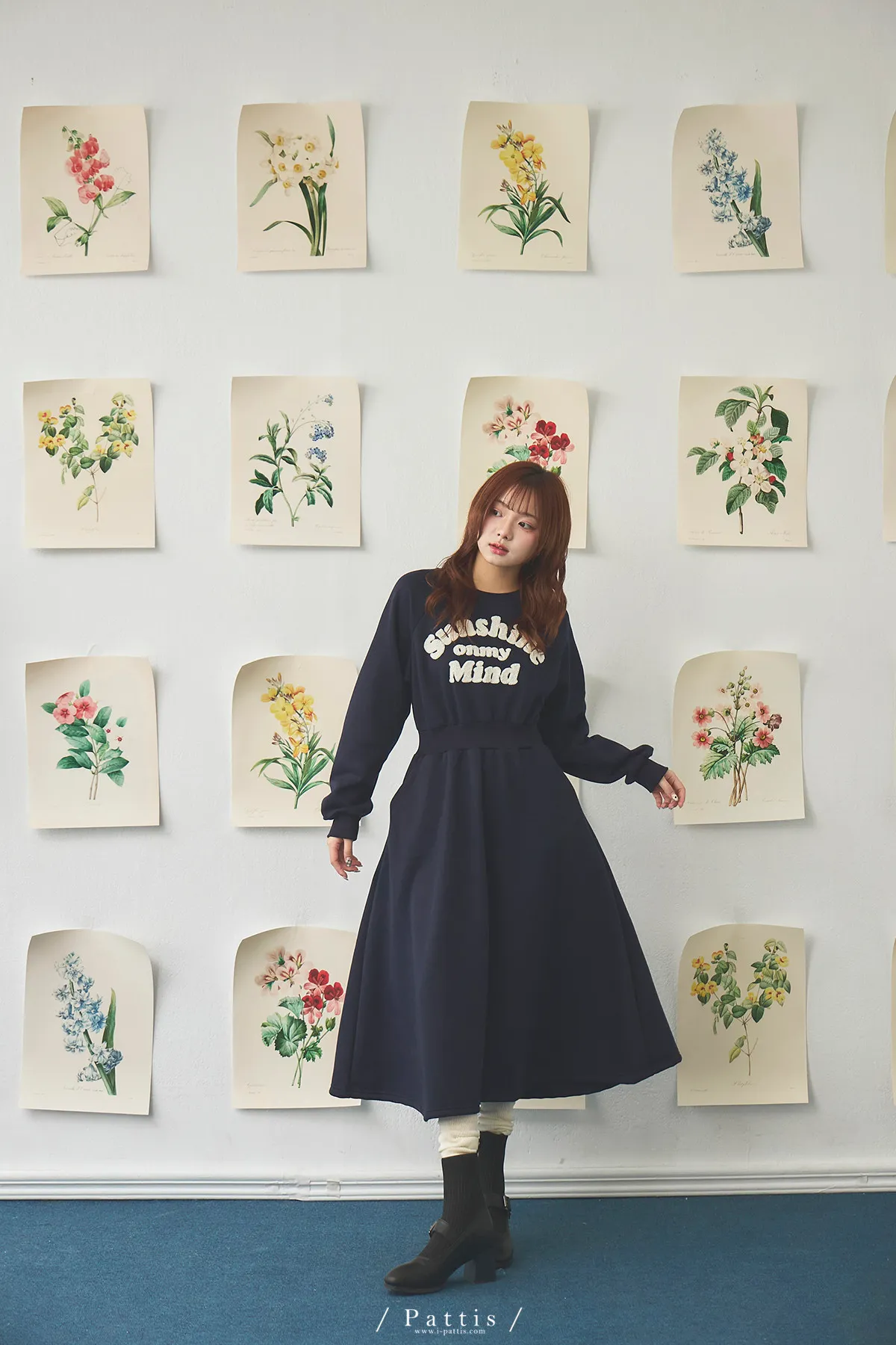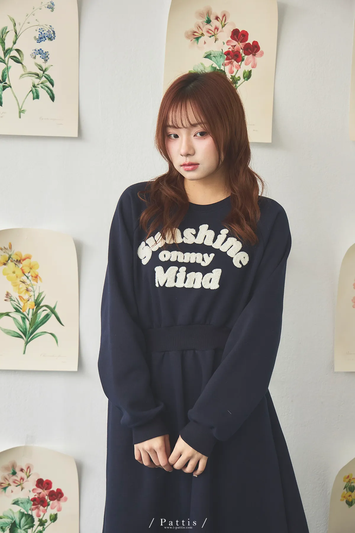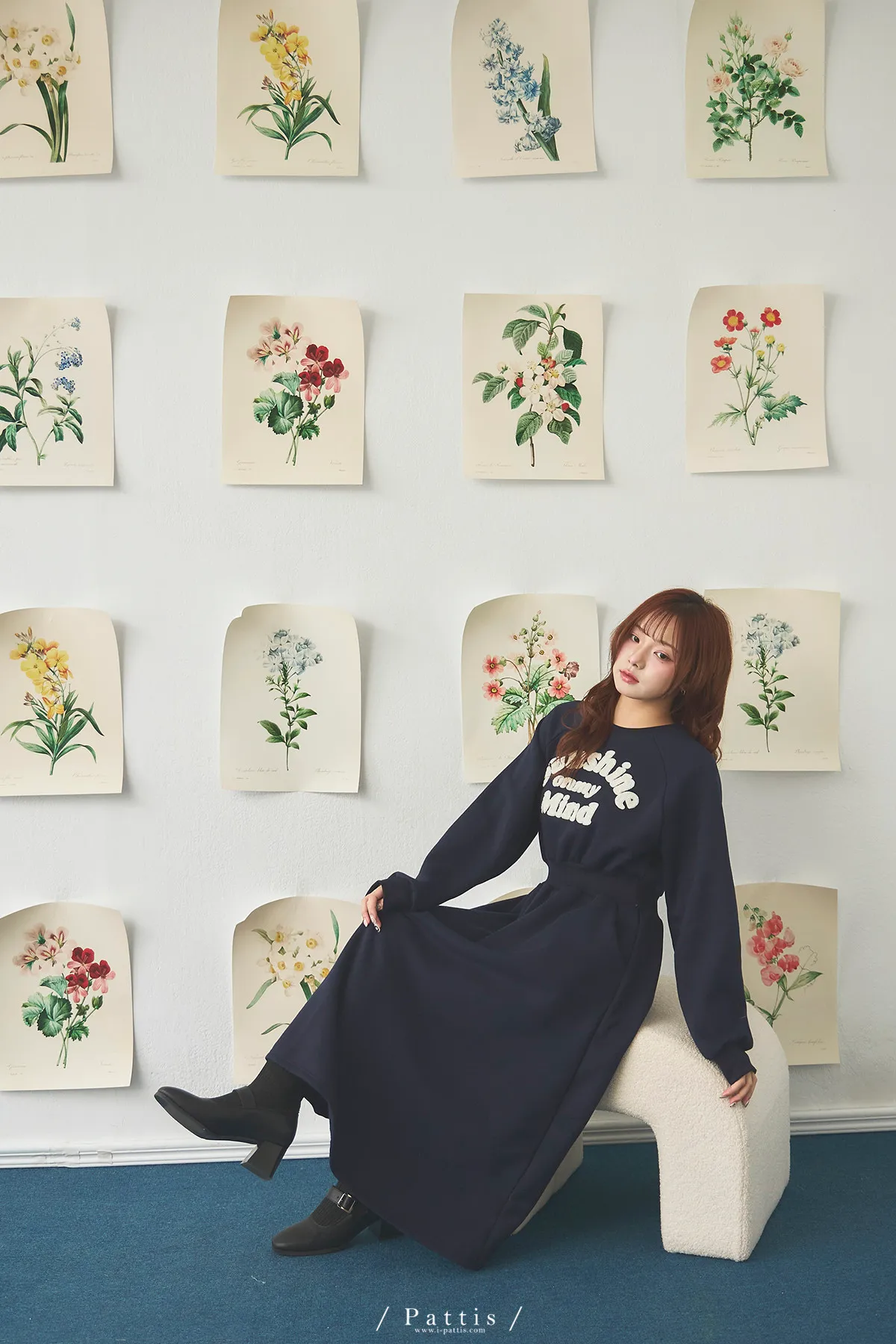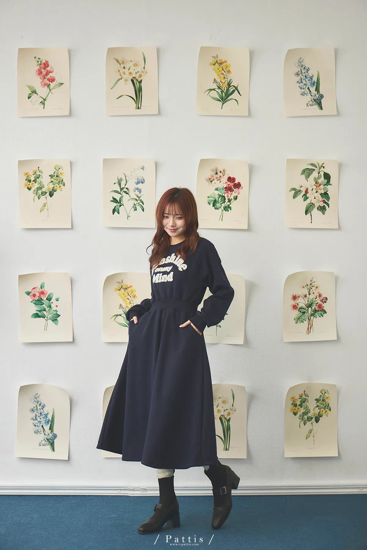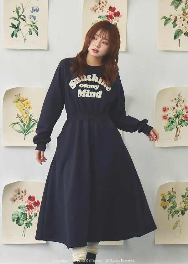 溫柔偏執狂 | 蓬蓬毛字母內刷毛圓領洋裝(深藍)