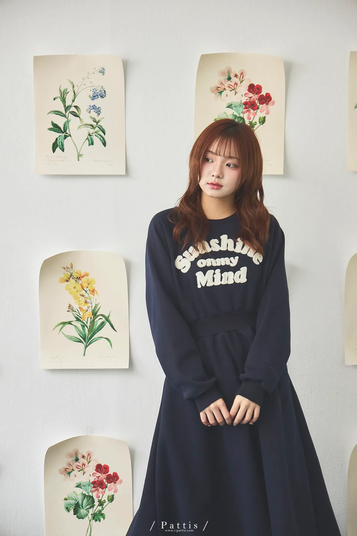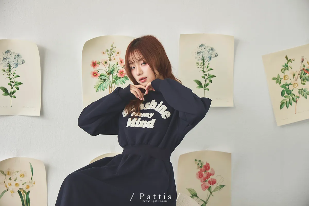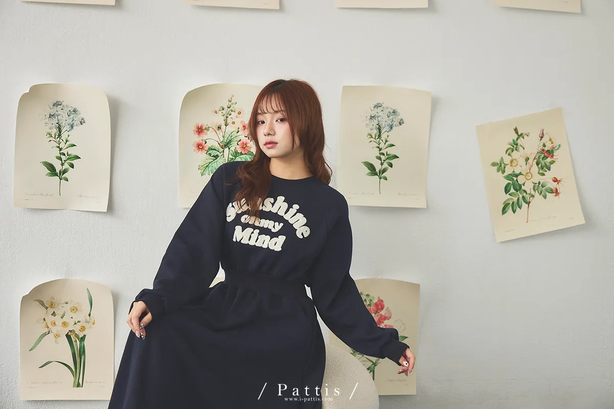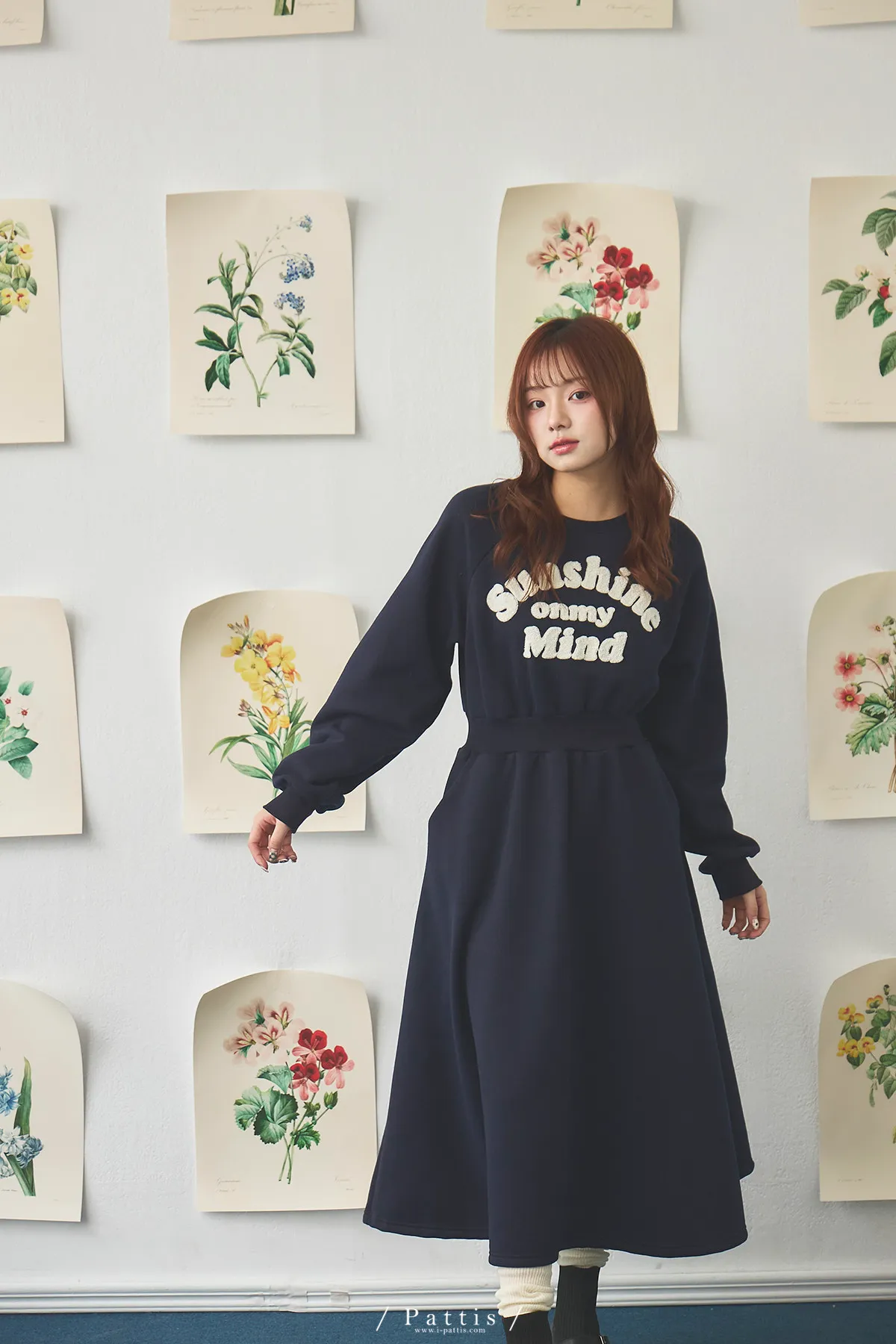 溫柔偏執狂 | 蓬蓬毛字母內刷毛圓領洋裝(深藍)