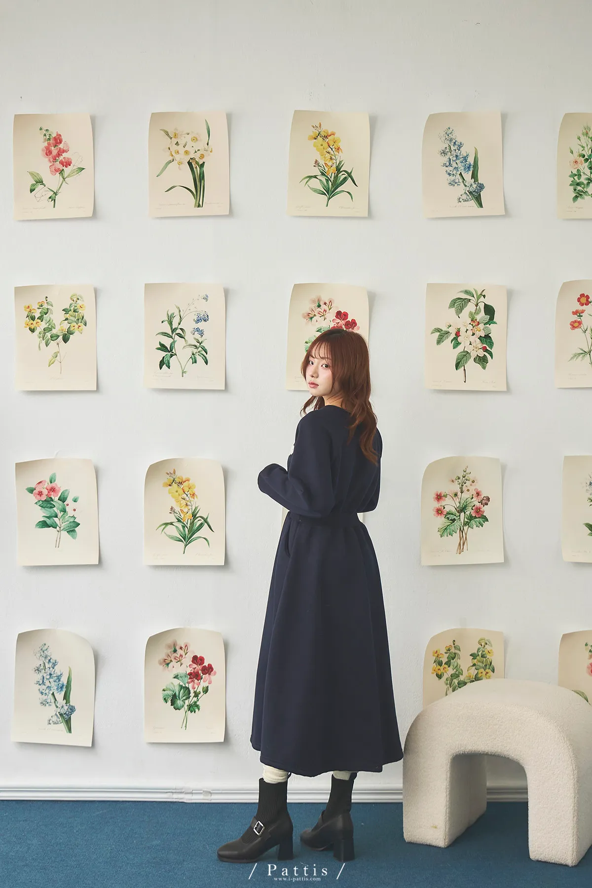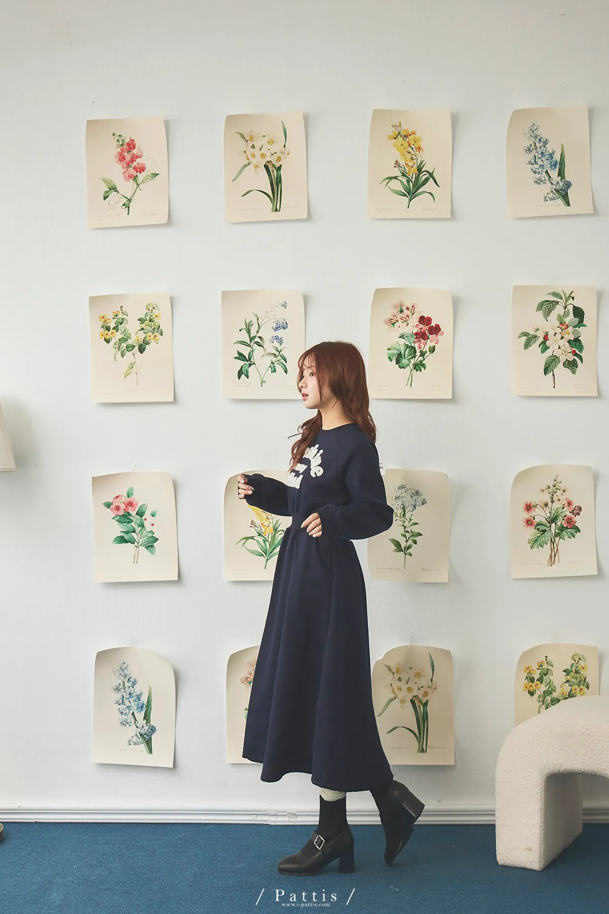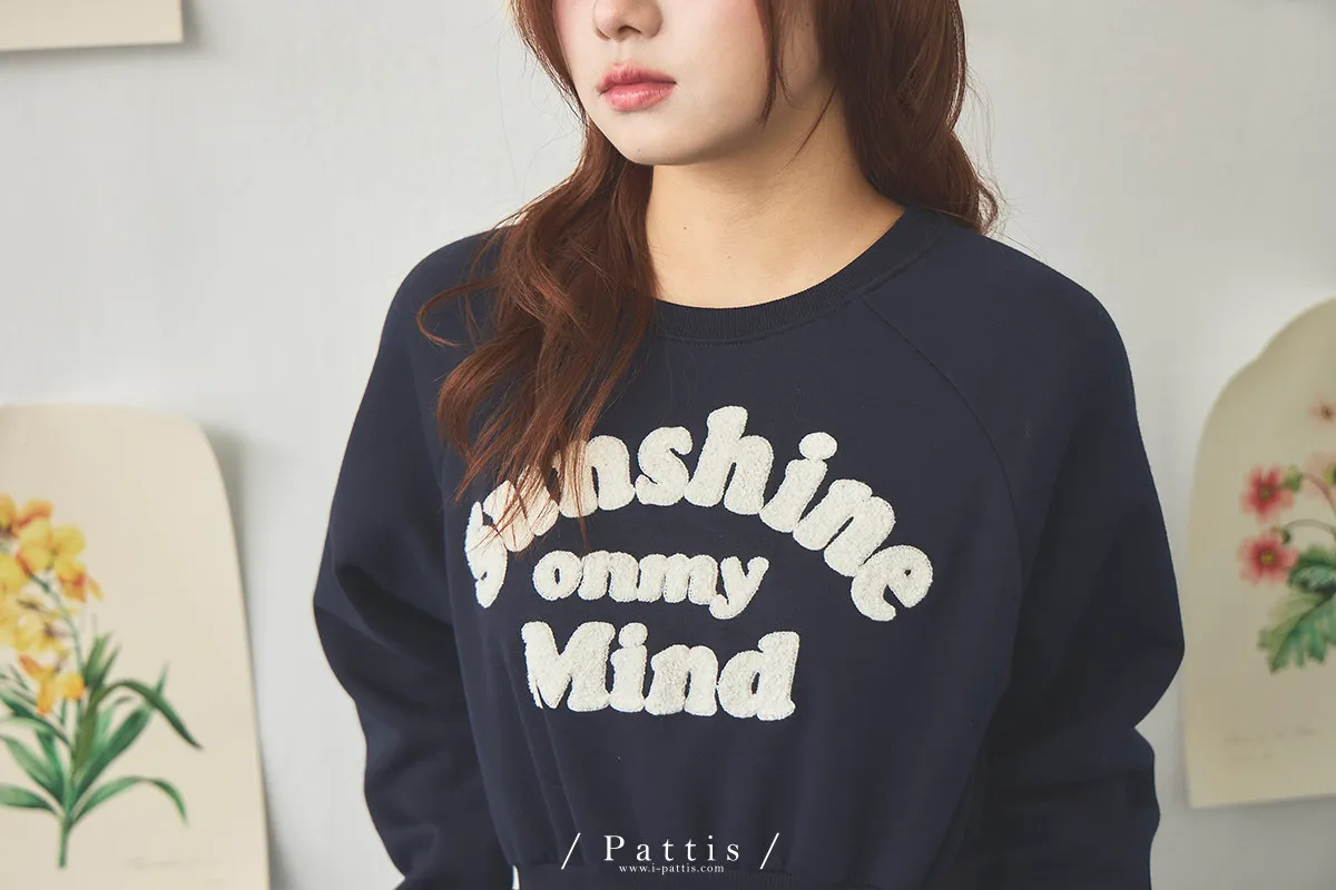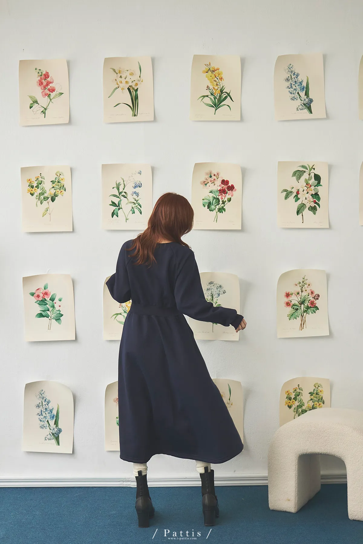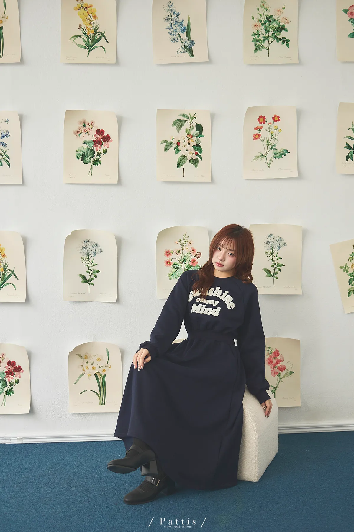 溫柔偏執狂 | 蓬蓬毛字母內刷毛圓領洋裝(深藍)