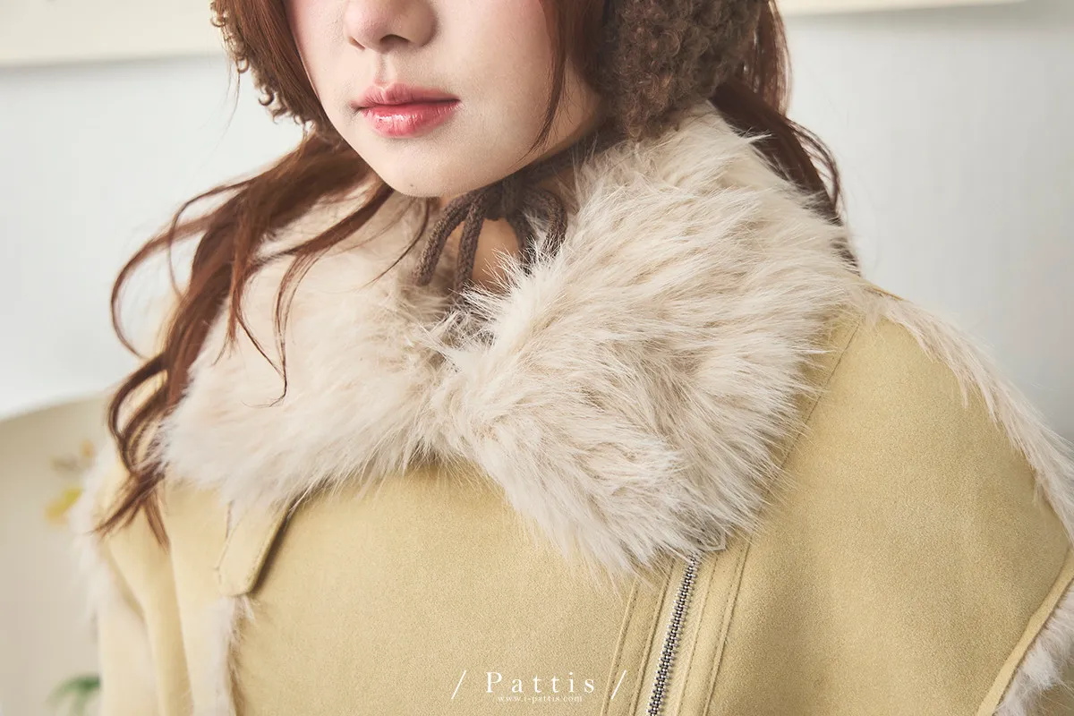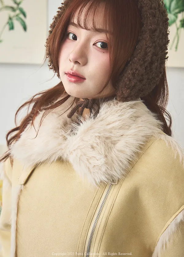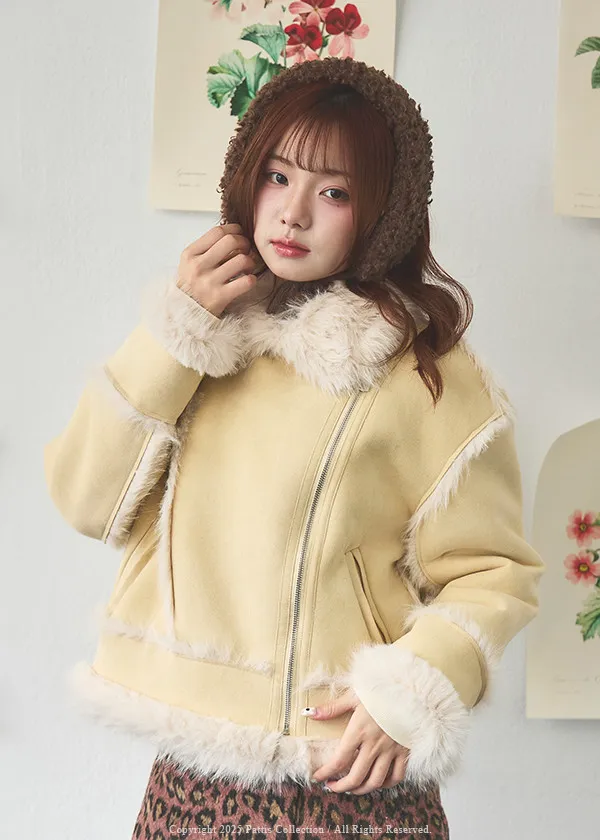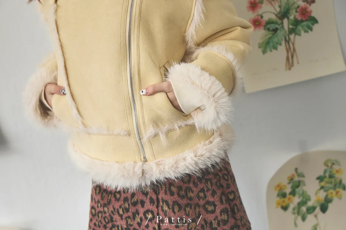 (現貨)編撰一個沒結局的童話 | 軟毛翻領麂皮口袋騎士外套(奶油黃)