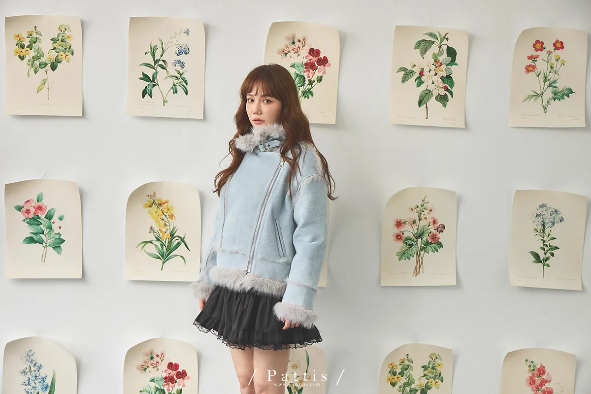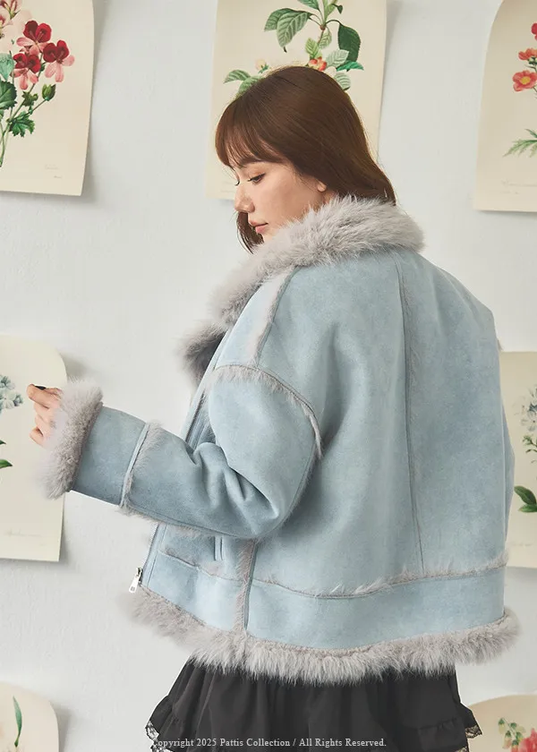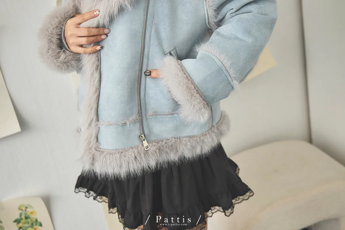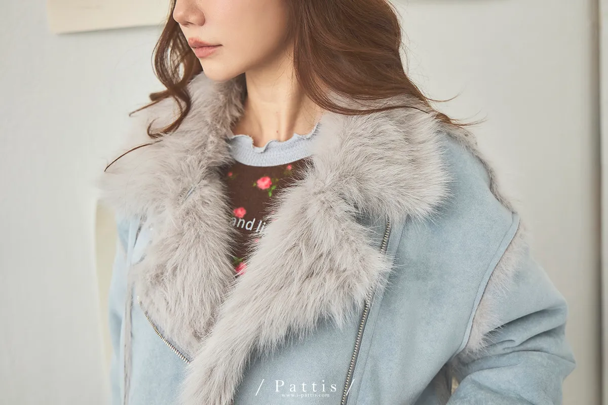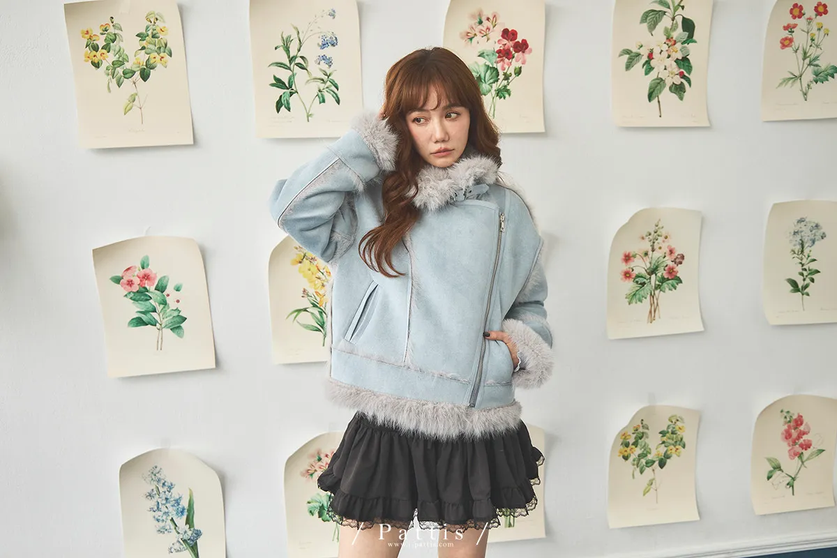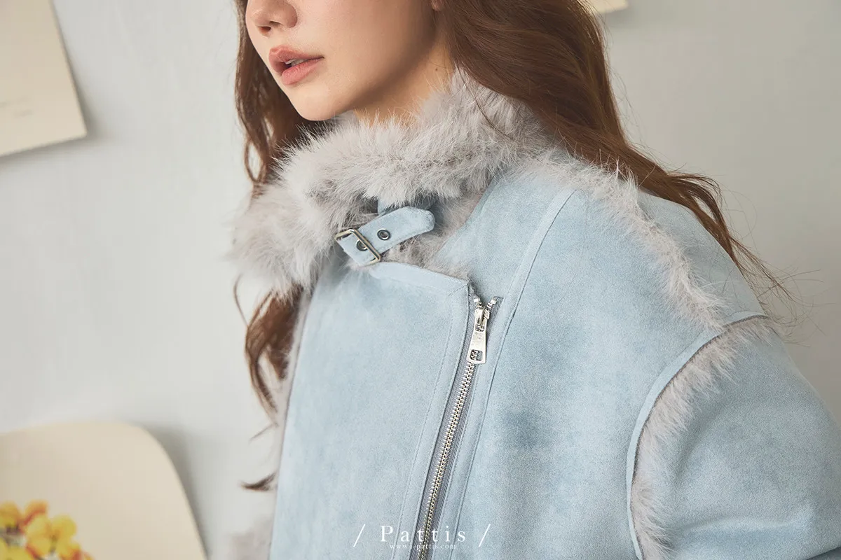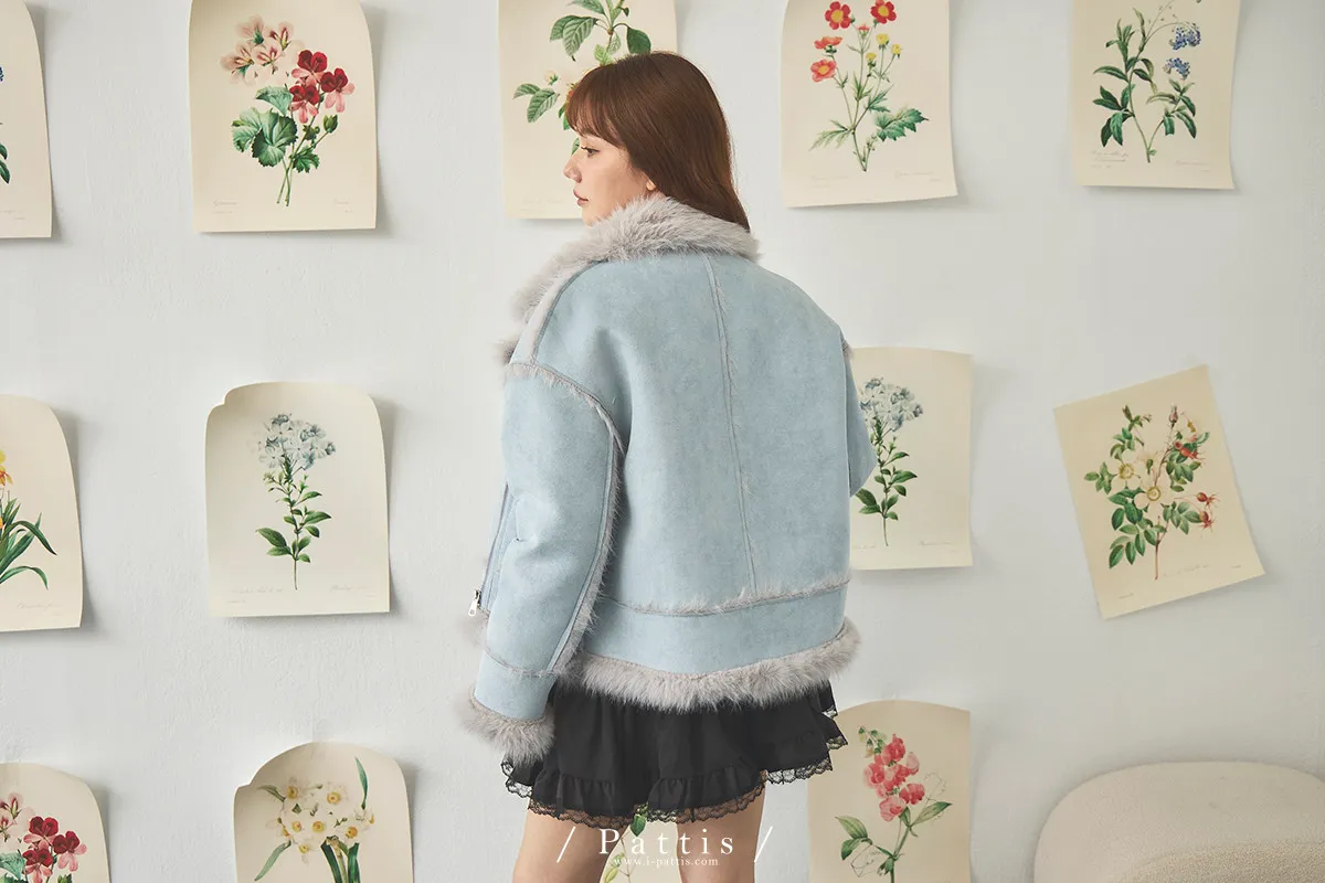 (現貨) 編撰一個沒結局的童話 | 軟毛翻領麂皮口袋騎士外套(晴空藍)