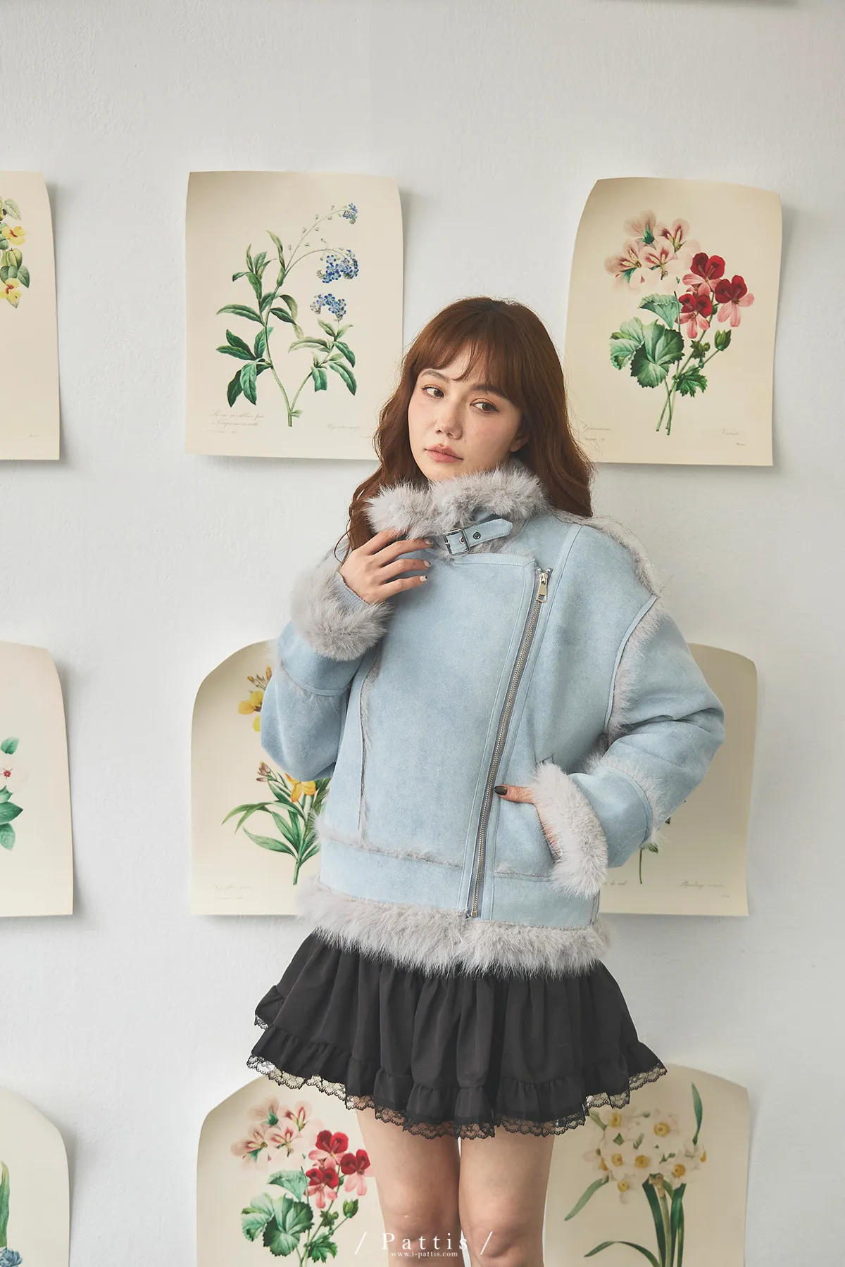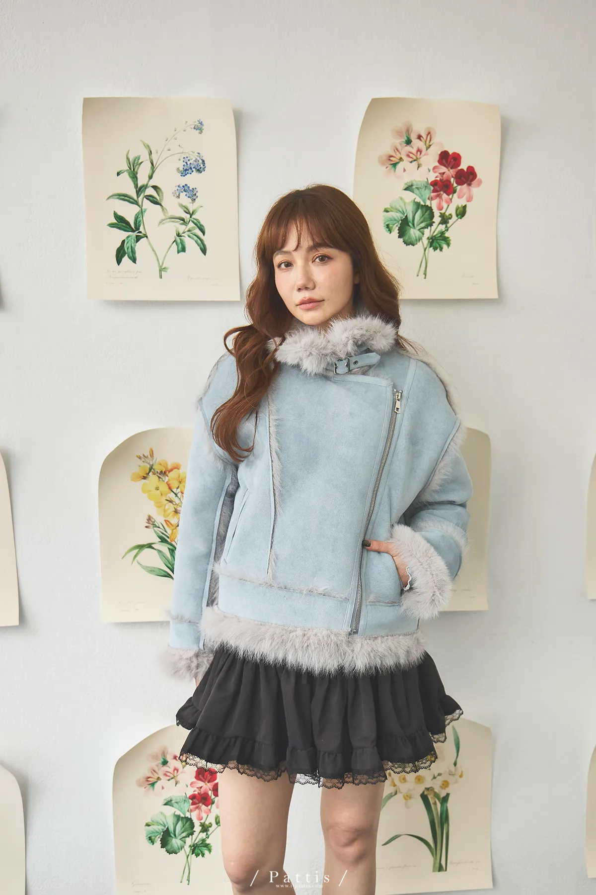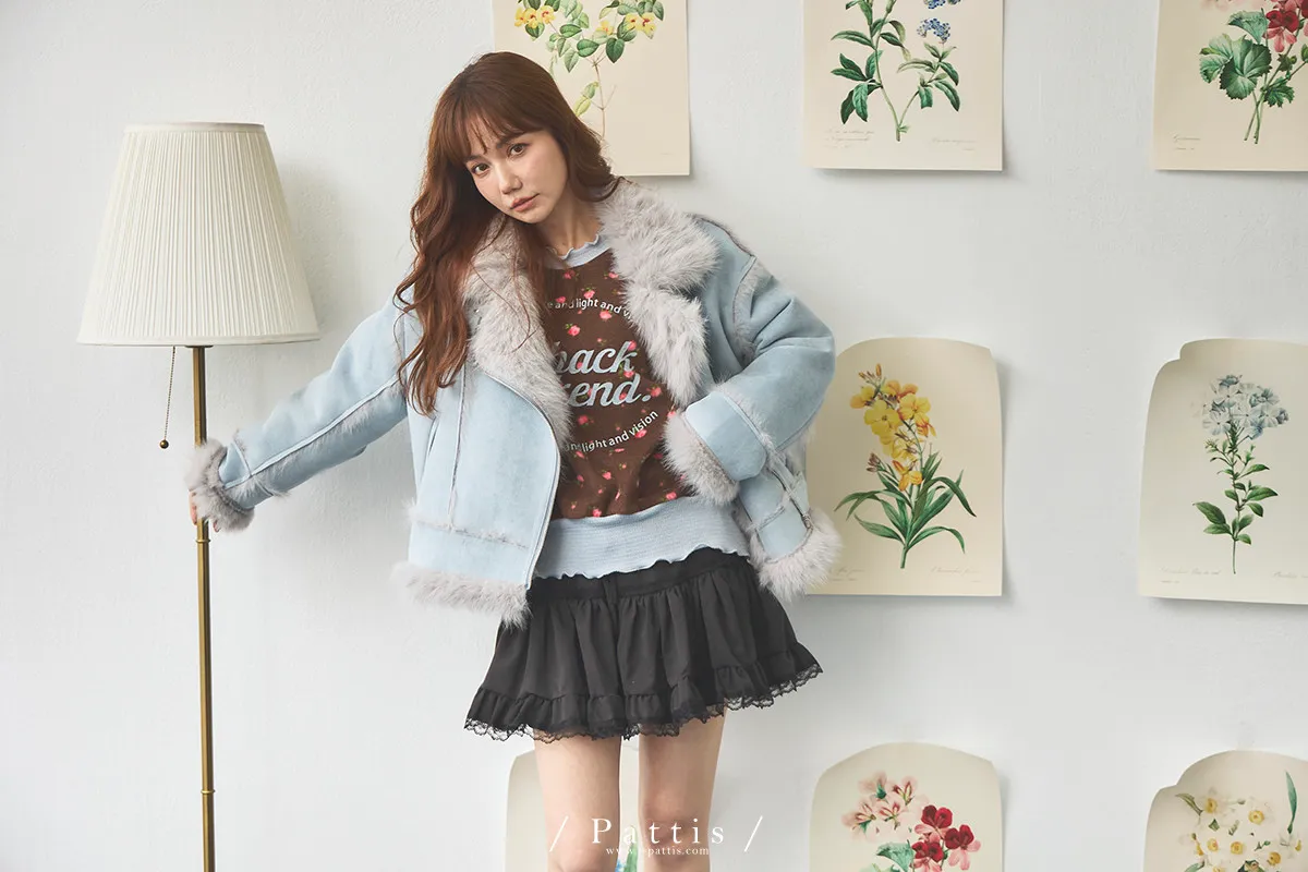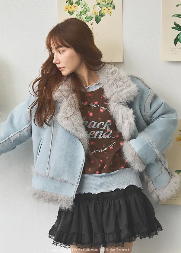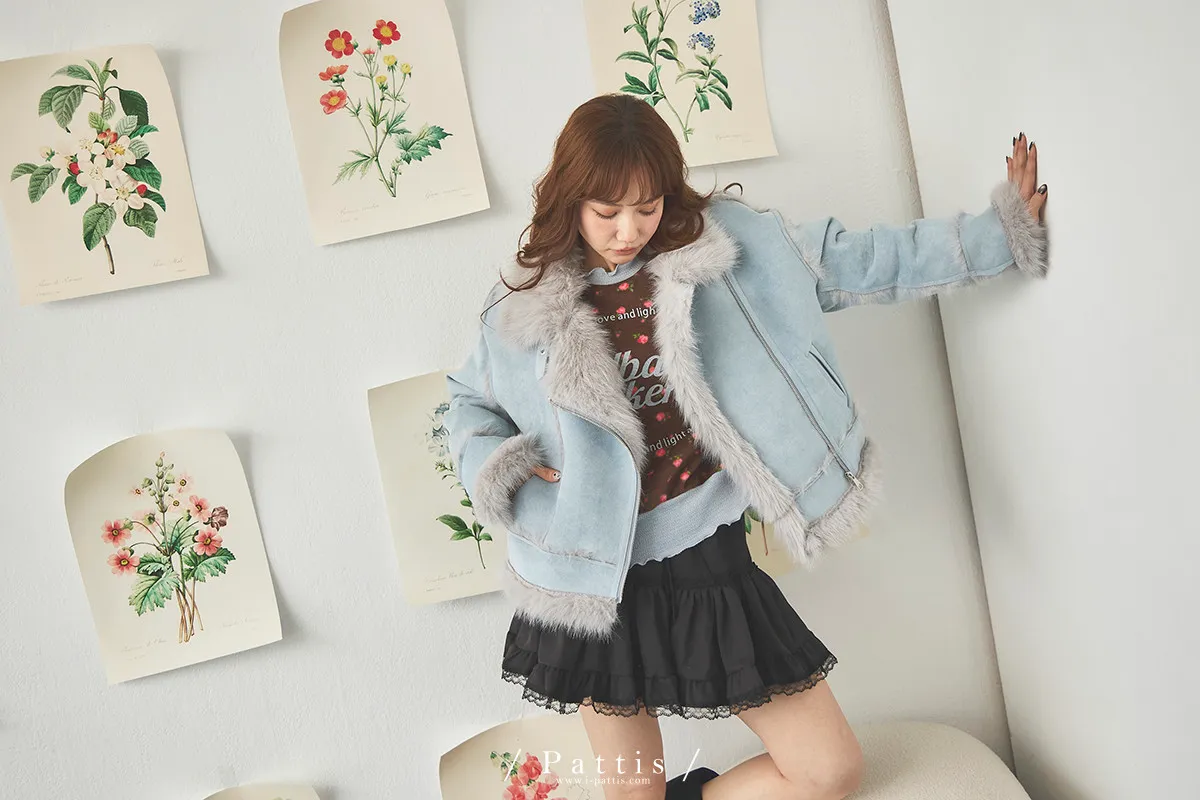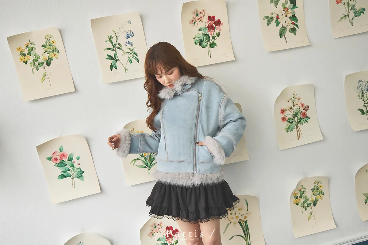 (現貨) 編撰一個沒結局的童話 | 軟毛翻領麂皮口袋騎士外套(晴空藍)