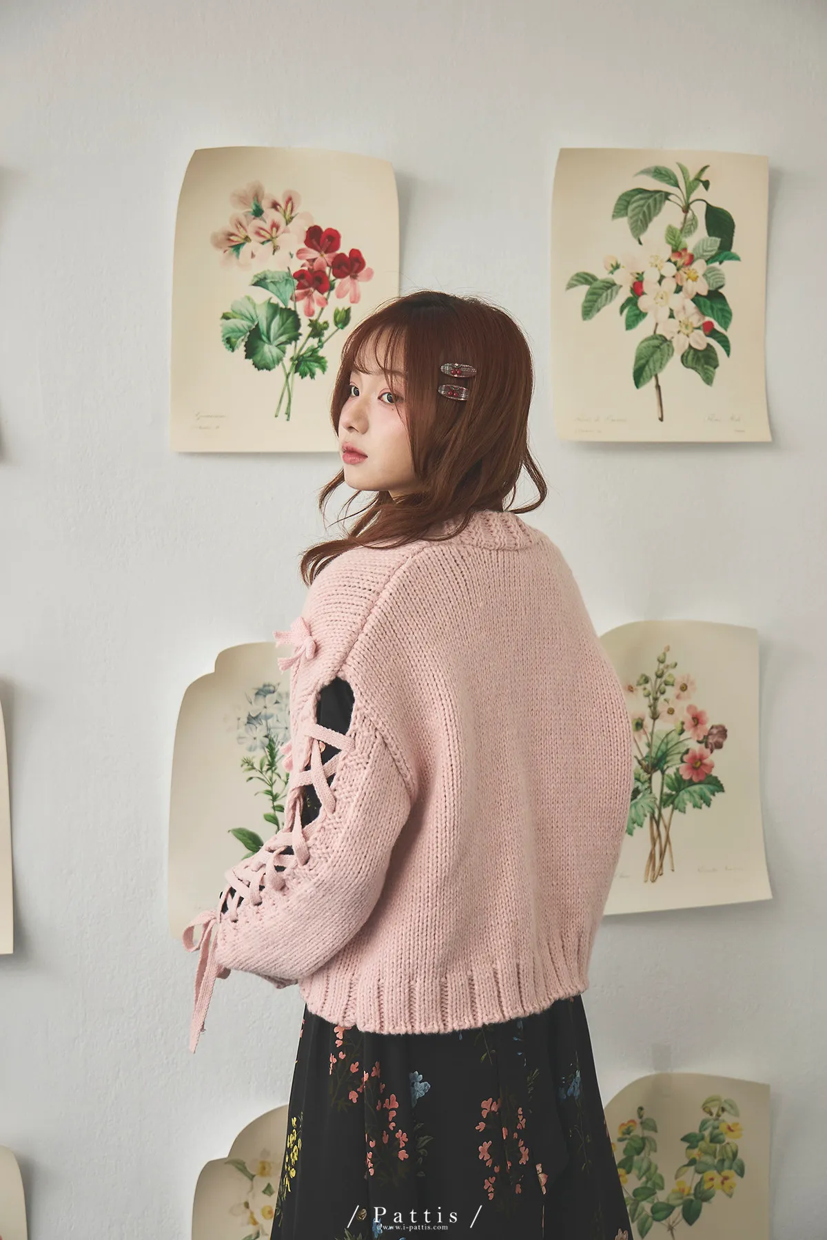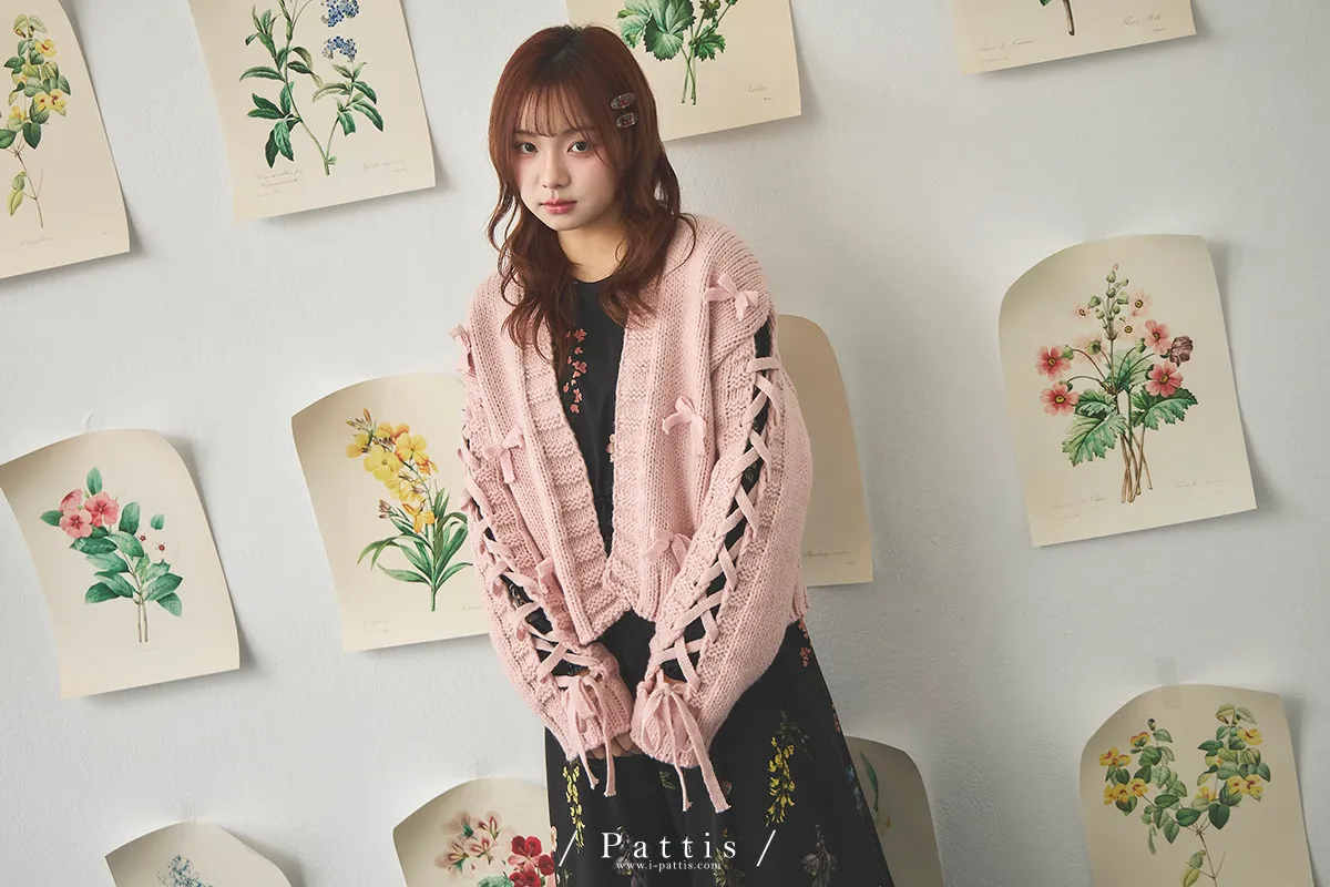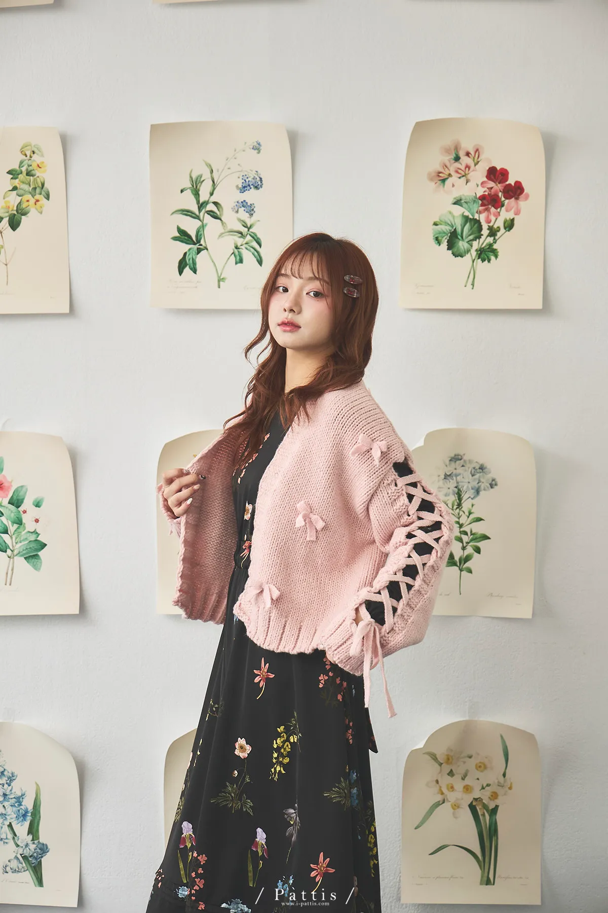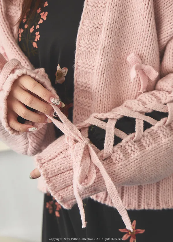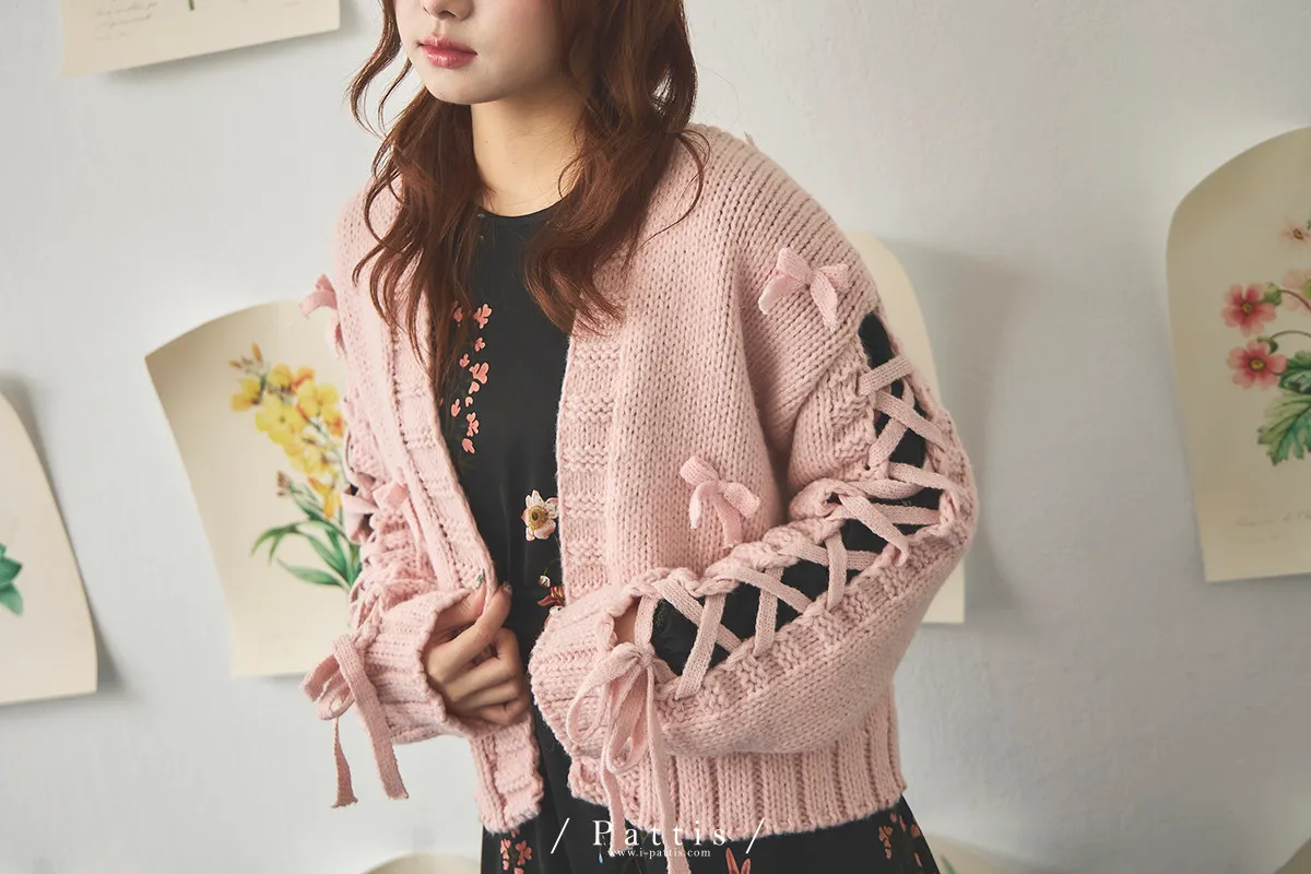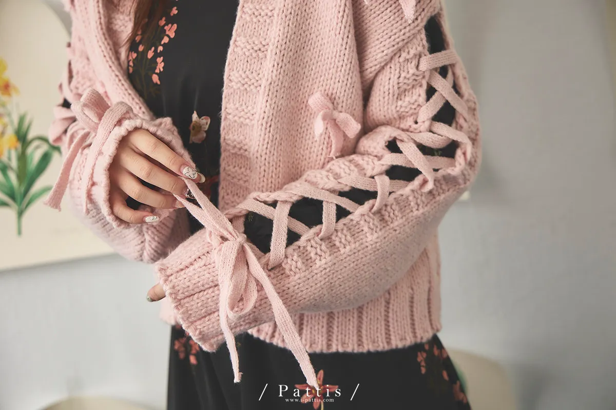 抱歉糖果不能外帶 | 袖交叉麻花蝴蝶結外套(粉)