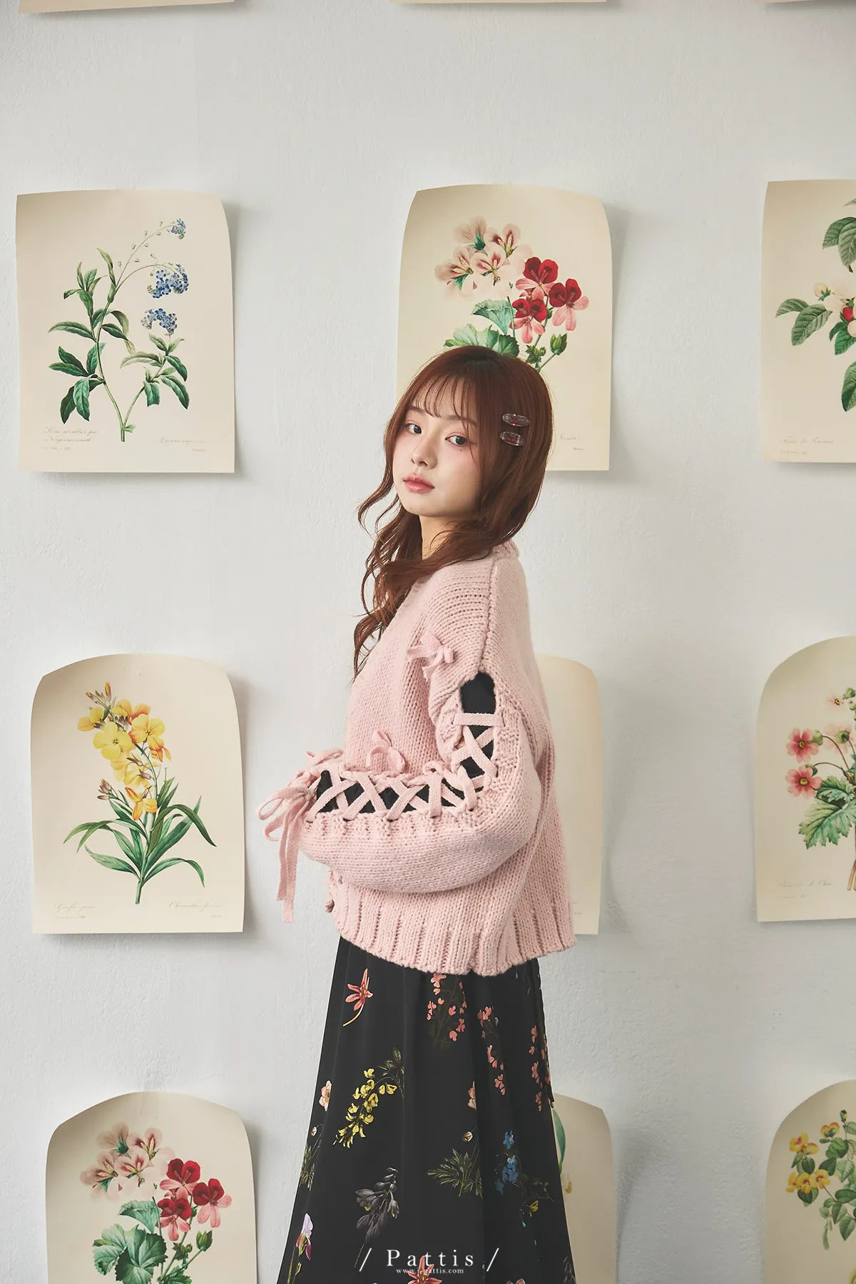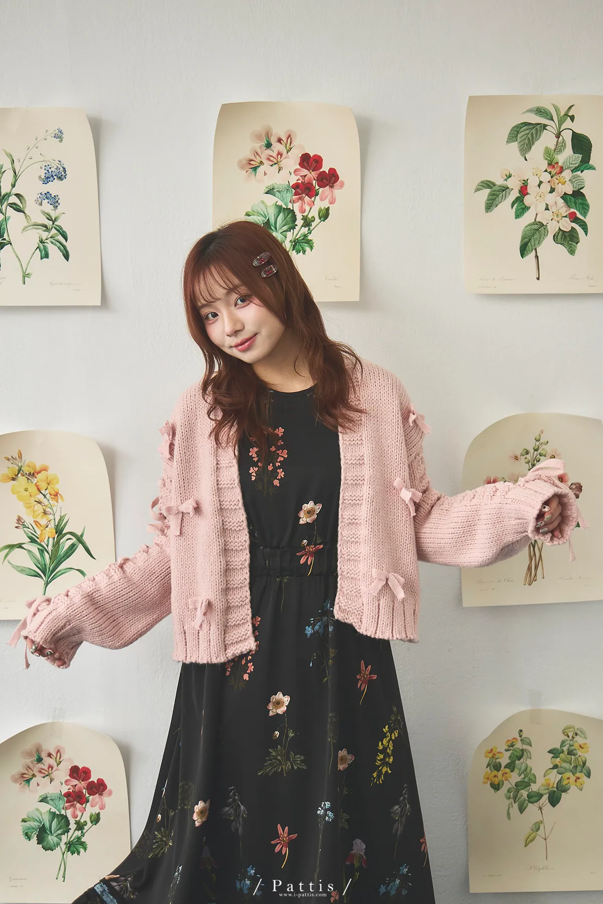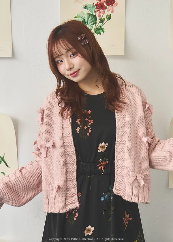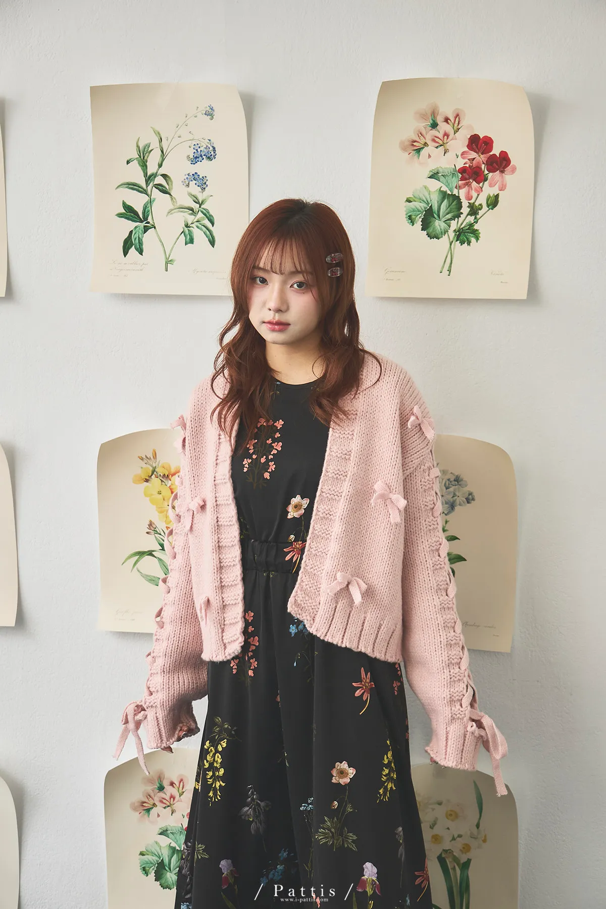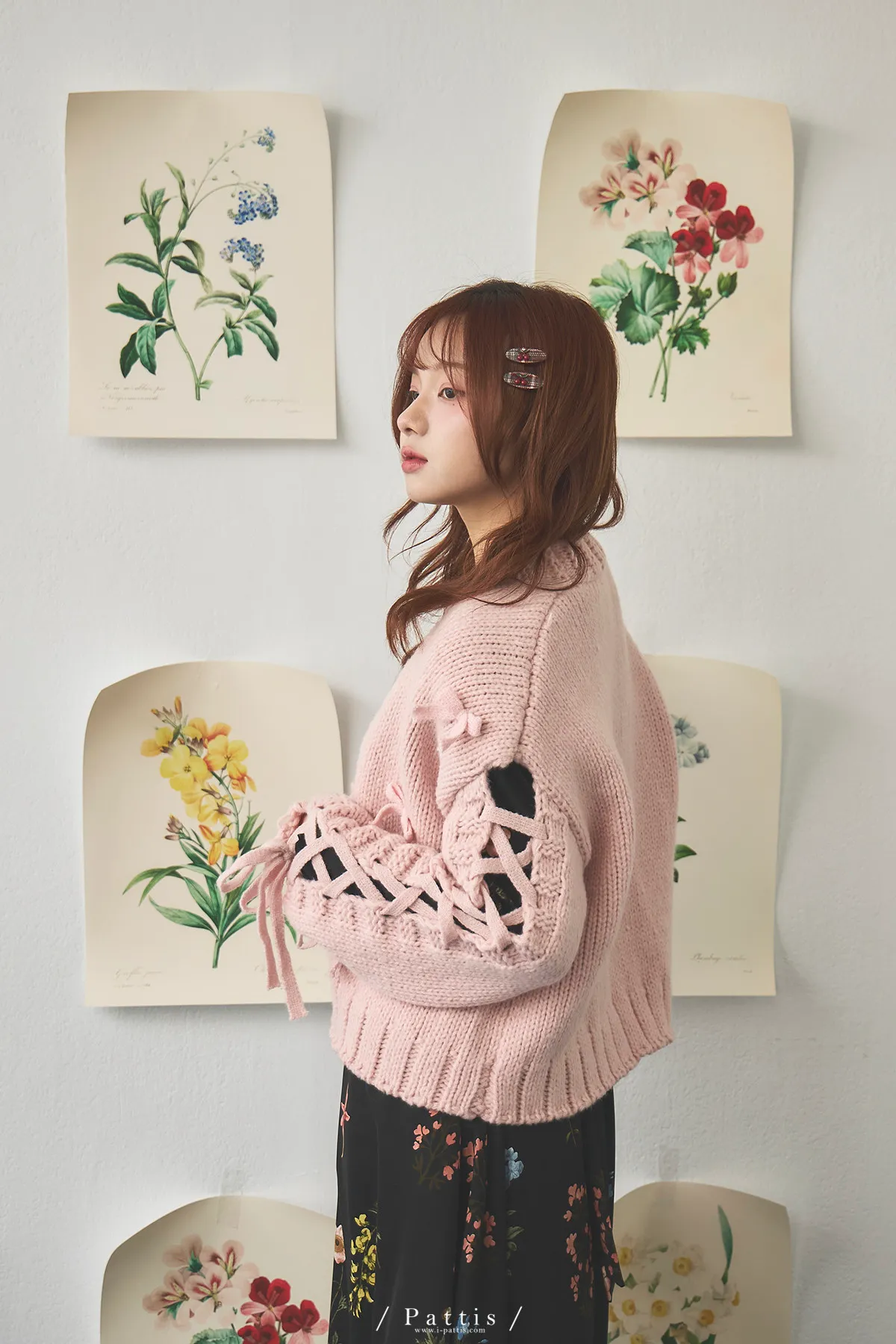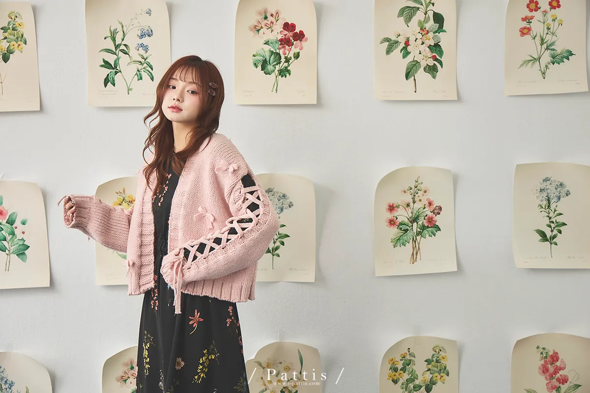 抱歉糖果不能外帶 | 袖交叉麻花蝴蝶結外套(粉)