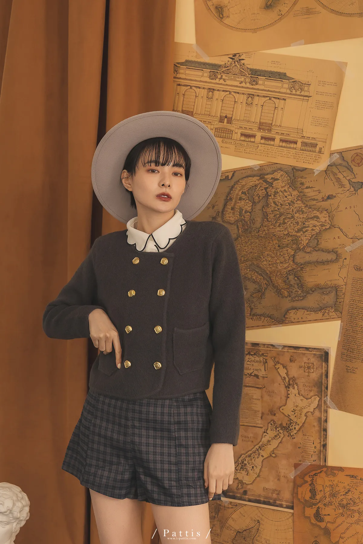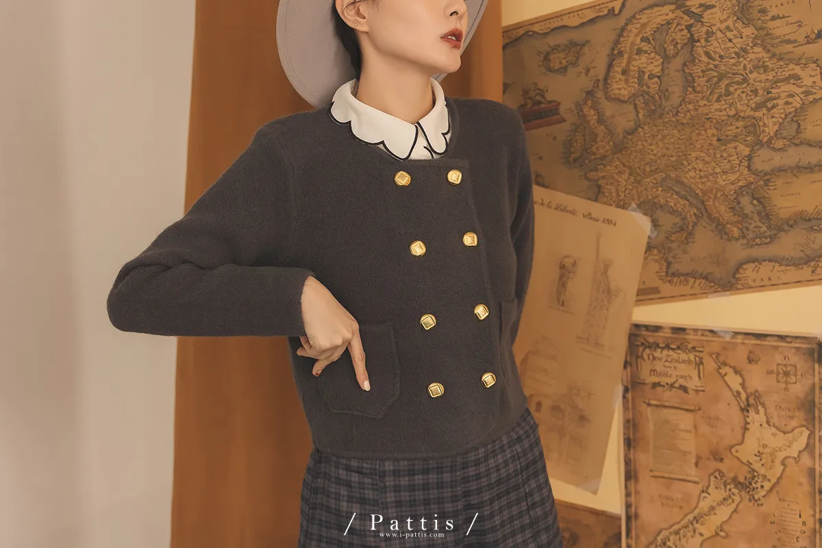 *特*軟毛不刺癢小墊肩雙排扣毛毛外套(深藍灰)